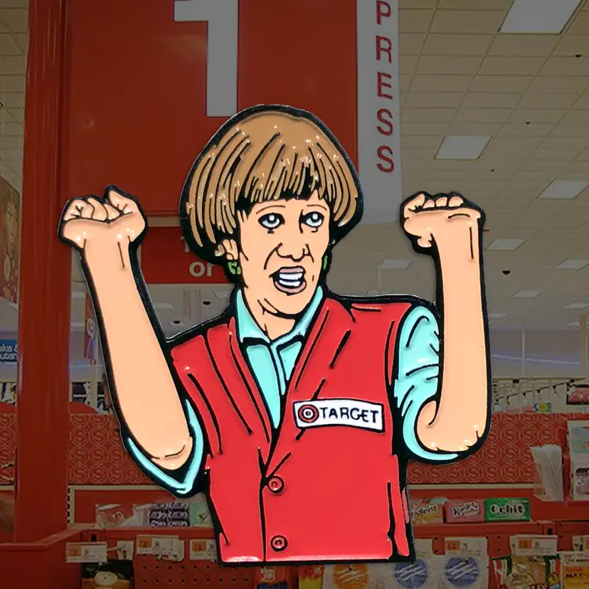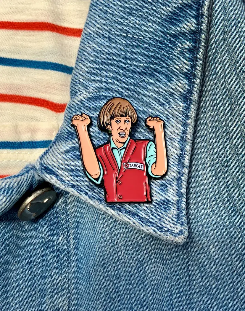 Brand new, never worn. Measures 1" x 1.25". Soft enamel on black nickel with rubber backing clutch.