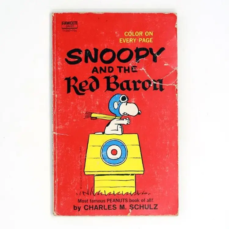 Dive into the adventures of Snoopy as the Flying Ace in this classic 'Snoopy and the Red Baron' book by Charles M. Schulz. Featuring illustrations on every page, this vintage Fawcett Crest edition is a great addition to any Peanuts fan's library. The book shows signs of wear, including creases and scuffs on the cover. Add this iconic piece to your Peanuts collection today!