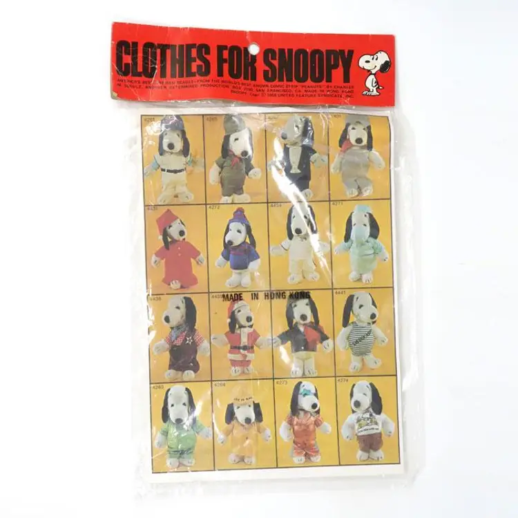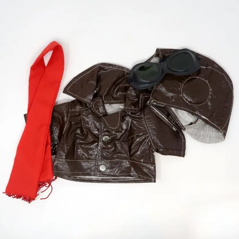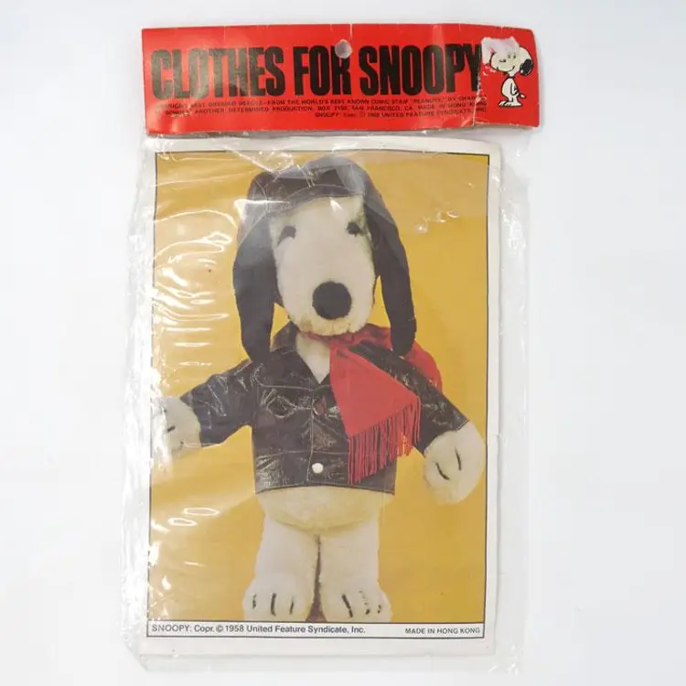 Dress Snoopy in style with this classic aviator jacket and red scarf outfit. Perfect for any Peanuts fan, this set brings Snoopy's adventurous spirit as a Flying Ace Pilot to life. Made for the 18" Snoopy plush from Determined Productions, it's a charming addition to your collection. Includes the original packaging. Shows some signs of use and wear.