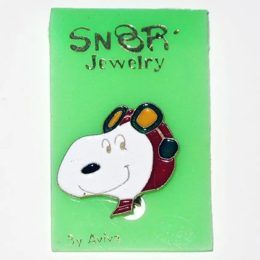 Show off your love for Snoopy with this charming Flying Ace enamel pin. Featuring Snoopy in his iconic aviator cap and goggles, this piece is perfect for any Peanuts fan. Made by Aviva, it's a delightful addition to your jewelry collection. Comes on the original card. Pin is about 1" tall.