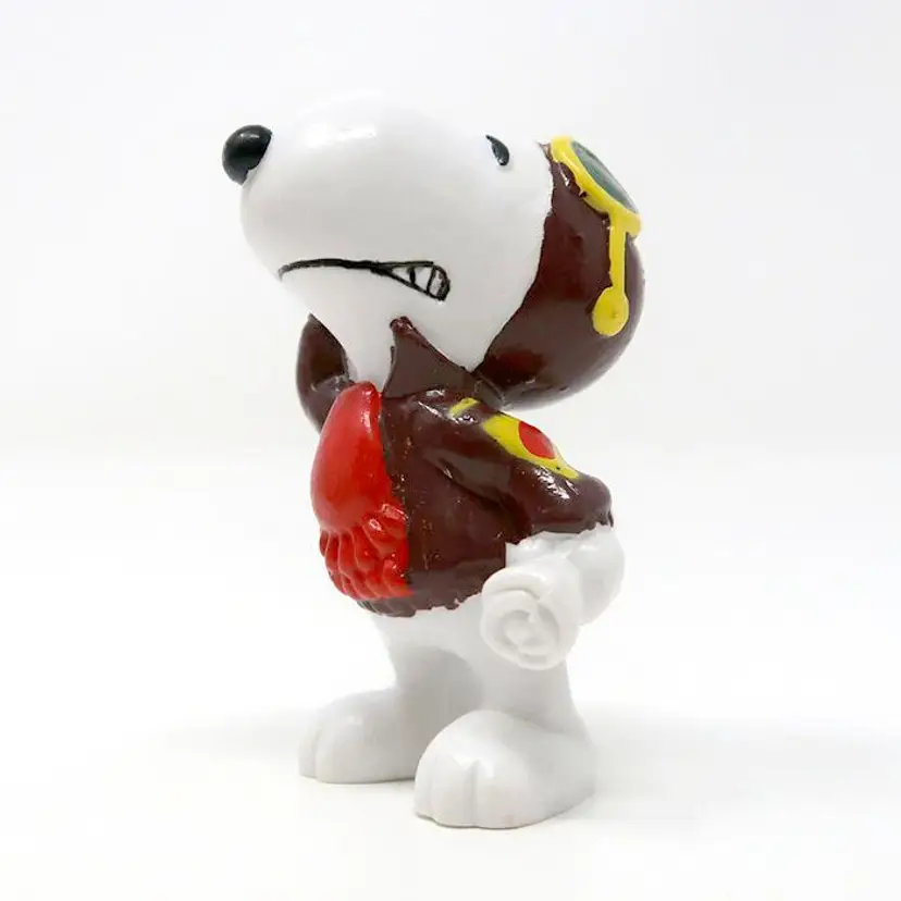 Celebrate Snoopy's adventurous spirit with this charming Flying Ace figurine. Dressed in his iconic aviator gear with red scarf, this collectible is perfect for any Peanuts fan. A delightful addition to your collection, showcasing Snoopy's classic pose and style. In very good condition. Made by Applause in the 1990s. About 3" tall.