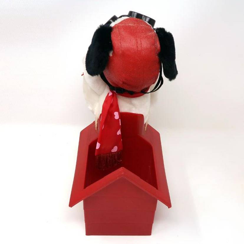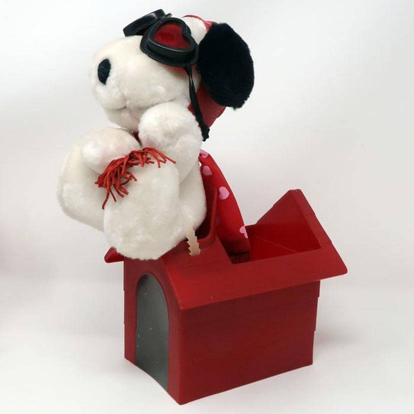 Take to the skies with this adorable Snoopy Flying Ace plush, complete with his iconic red scarf and aviator goggles featuring hearts. Perched in his classic red doghouse, this collectible planter is a great addition to a Peanuts comic strip fan's collection. Perfect for Valentine's Day, it brings the adventurous spirit of Snoopy to life. Shows some signs of age and use including the vinyl pilot's helmet flaking and elastic is loose.