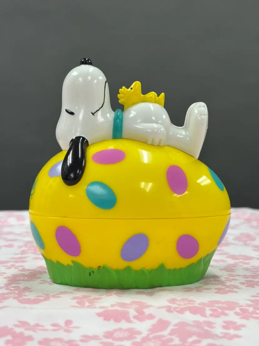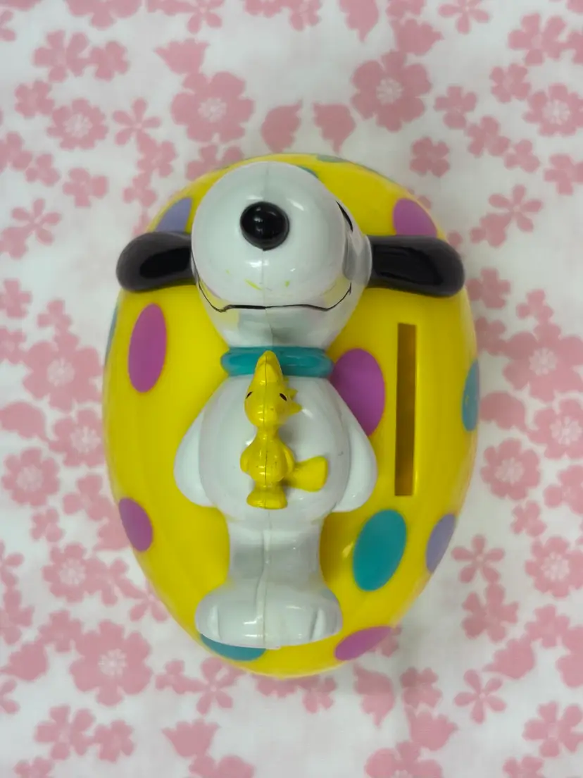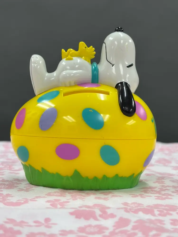 Whitman’s bank with Snoopy and Woodstock lying on an Easter egg. Does have some wear as seen in the photos. Would make a great addition to any collection!