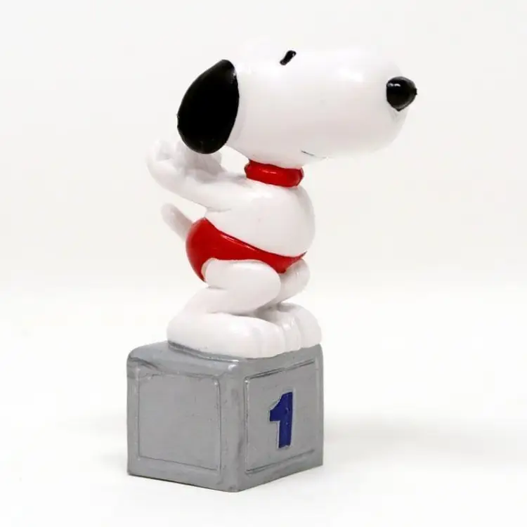 Celebrate Snoopy's athletic side with this adorable swimmer figurine. Snoopy stands proudly on a podium wearing a red swimsuit, ready for his next big race. Perfect for any Peanuts fan's collection. This charming piece is a must-have for Snoopy enthusiasts. This Peanuts PVC figurine stands about 3" high and was made by Determined Productions in the early 1980s. Excellent condition.