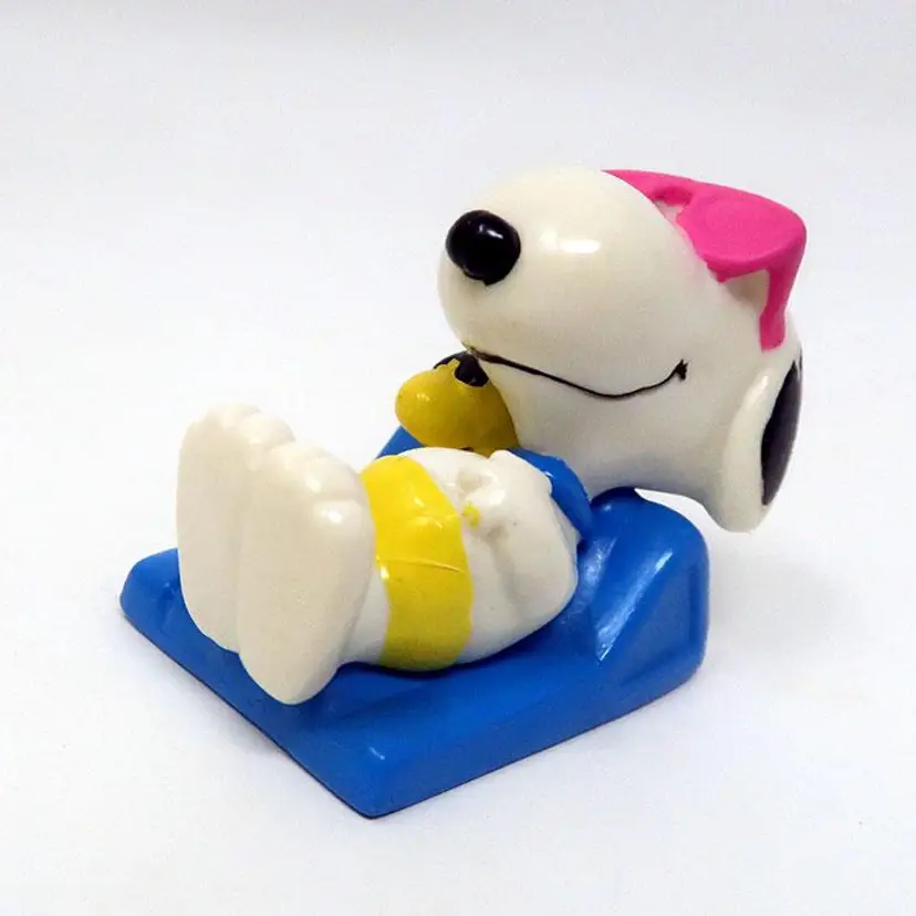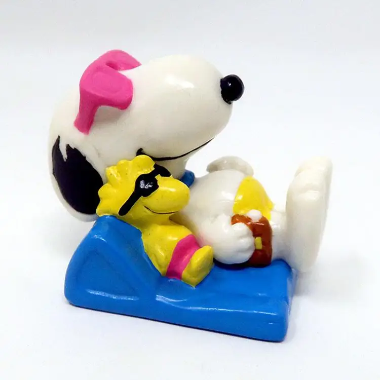 Bring the beach vibes to your Peanuts collection with this adorable Snoopy & Woodstock Beach Day Figurine. Featuring Snoopy lounging with Woodstock on a blue beach float, it's a perfect piece for fans of the iconic duo. A great find for any Peanuts enthusiast! Made by Whitman's Chocolates in the 1990's. About 2" long. Some signs of age and use.