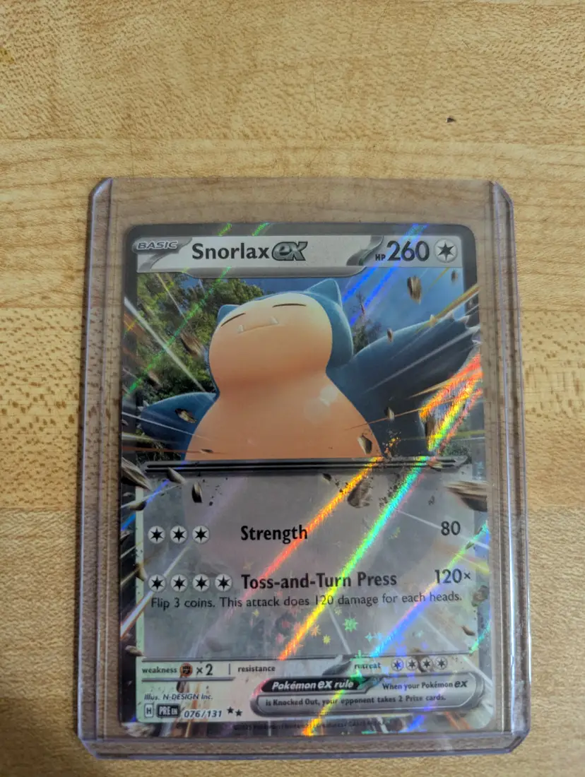 Awesome Snorlax EX card in protective sleeve. Perfect for any Pokémon collector or fan!