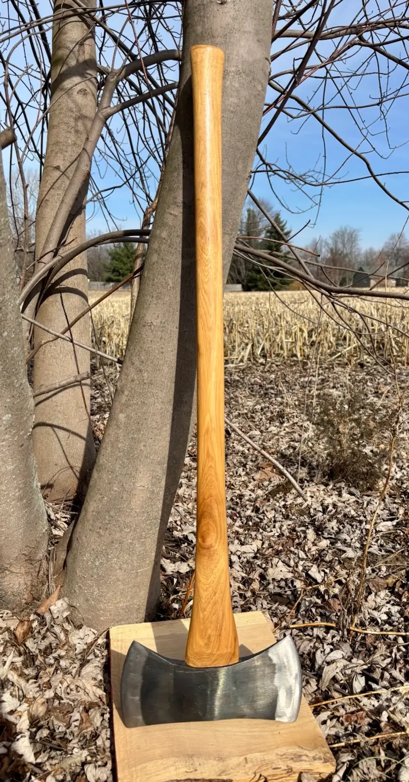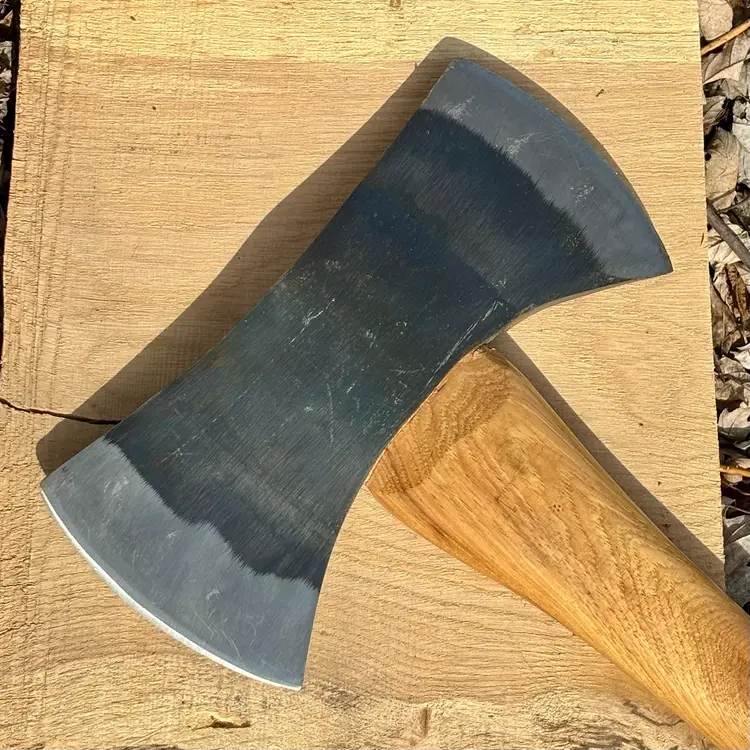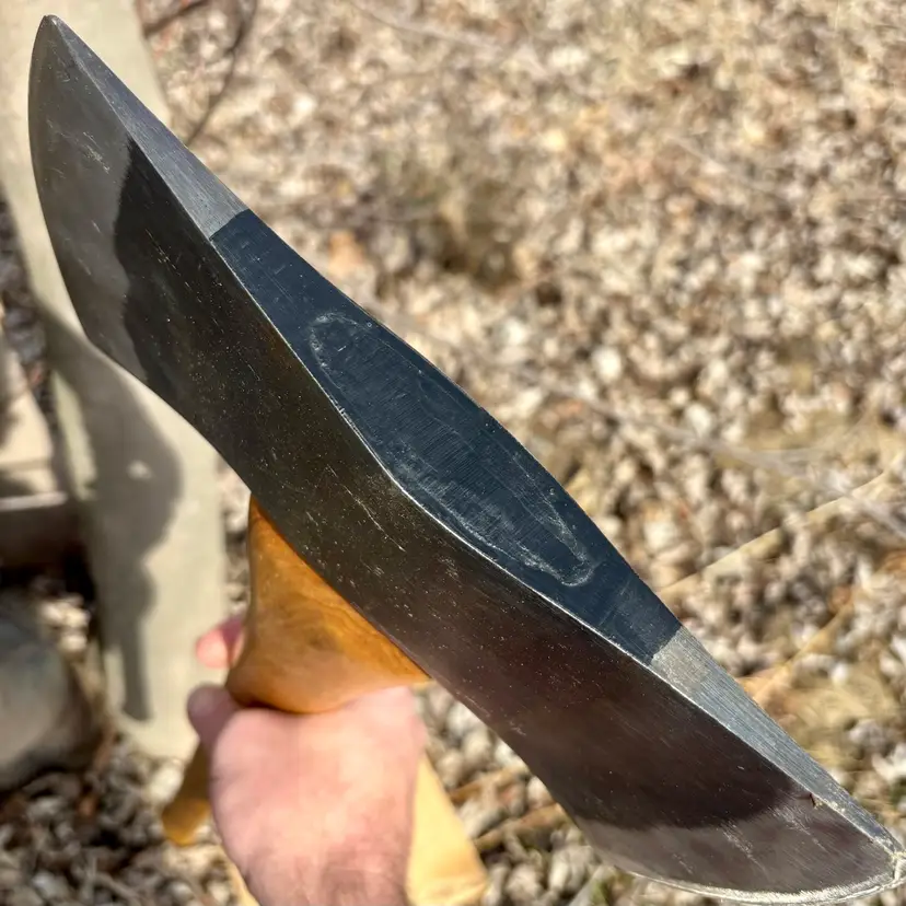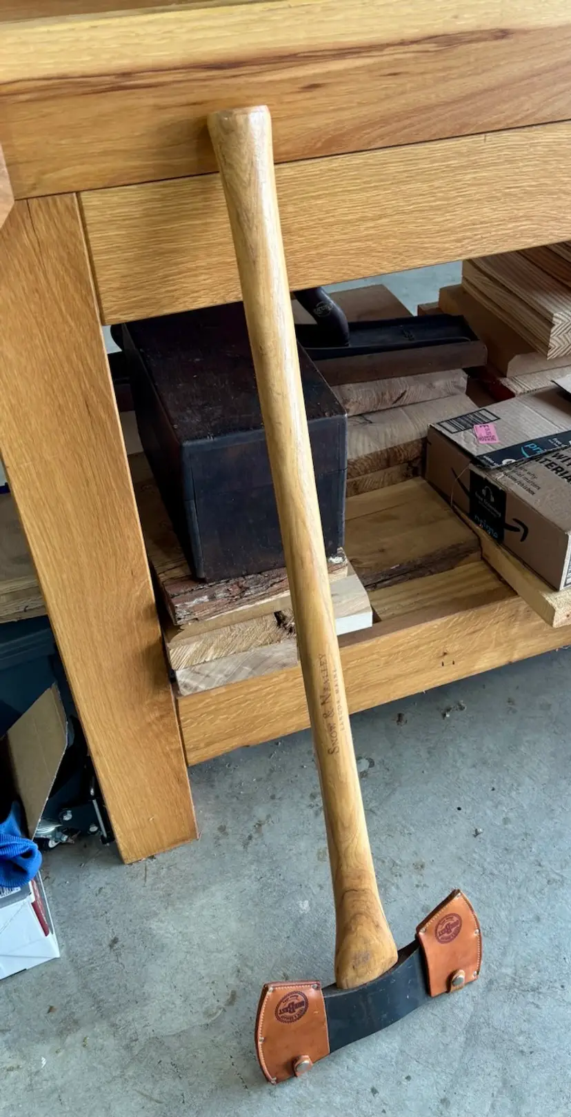 Beautiful Snow & Nealley "Our Best" Double Bit Axe. Appears to have never been used. Measures 36" in length from handle to head and weighs approximately 83 ounces total. Each side of the blade has a sturdy leather sheath with snap closure and embossed with S&N markings. The only markings on the axe head are a "SN" stamped into the bottom edge as shown in the last picture. The handle is also embossed with Snow & Nealley Bangor Maine. I originally purchased this at an auction to have as a cool feature mounted on the wall in my shop, but have decided it would be better in the hands of a collector or someone that could put it to work. Price is negotiable, so send me a reasonable offer to start the conversation. Obviously, it will be cumbersome to package and heavy to ship, thus the shipping charge.
