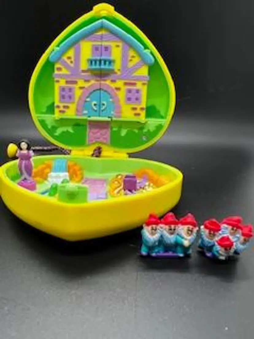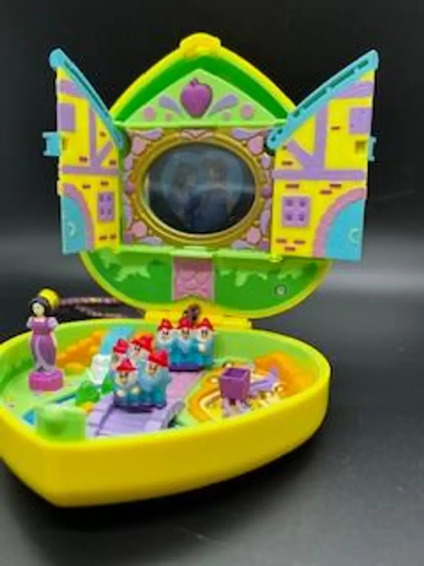 This Snow White, My Secret Fairy Tales Compact Playset belonged to my daughters, ages 38, 36 and 34 now. They don’t have any daughters and don’t have any interest in keeping this, so I am selling it. It is in excellent used condition by three girls who loved it and gently played with it. It come from a smoke free home with no pets. Please look closely at all pictures before purchasing.