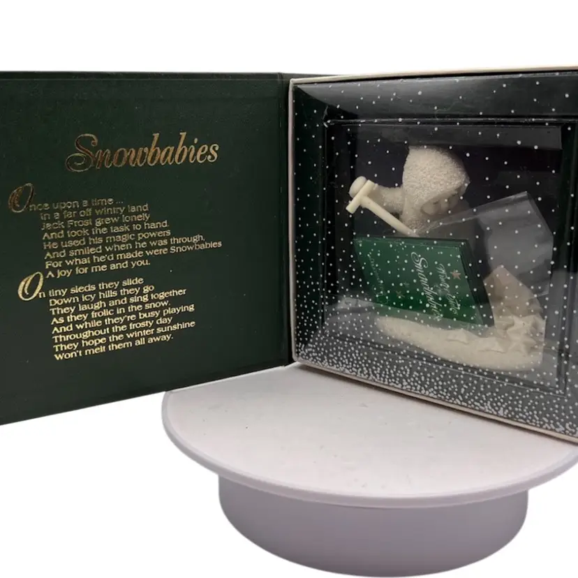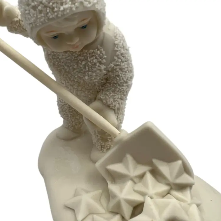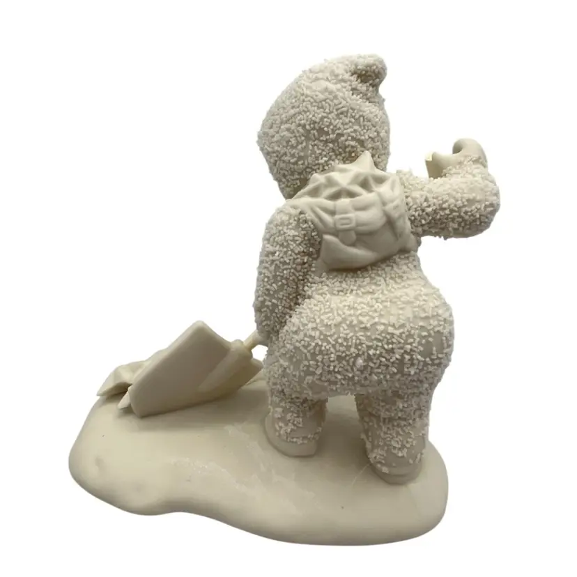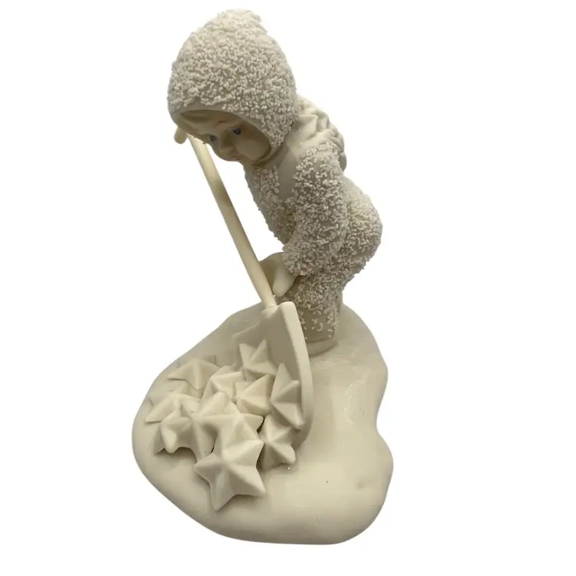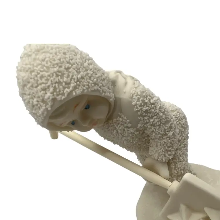 DEPT 56 SNOWBABIES WINTER TALES “SO MUCH WORK TO DO”. THIS SWEET BABY IS MADE OUT OF PORCELAIN BISQUE WITH HAND PAINTING FOR THE FACE. MADE IN TAIWAN EXCLUSIVELY FOR DEPT 56. THIS IS A RETIRED ITEM. # 6837-3