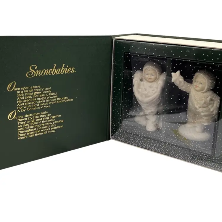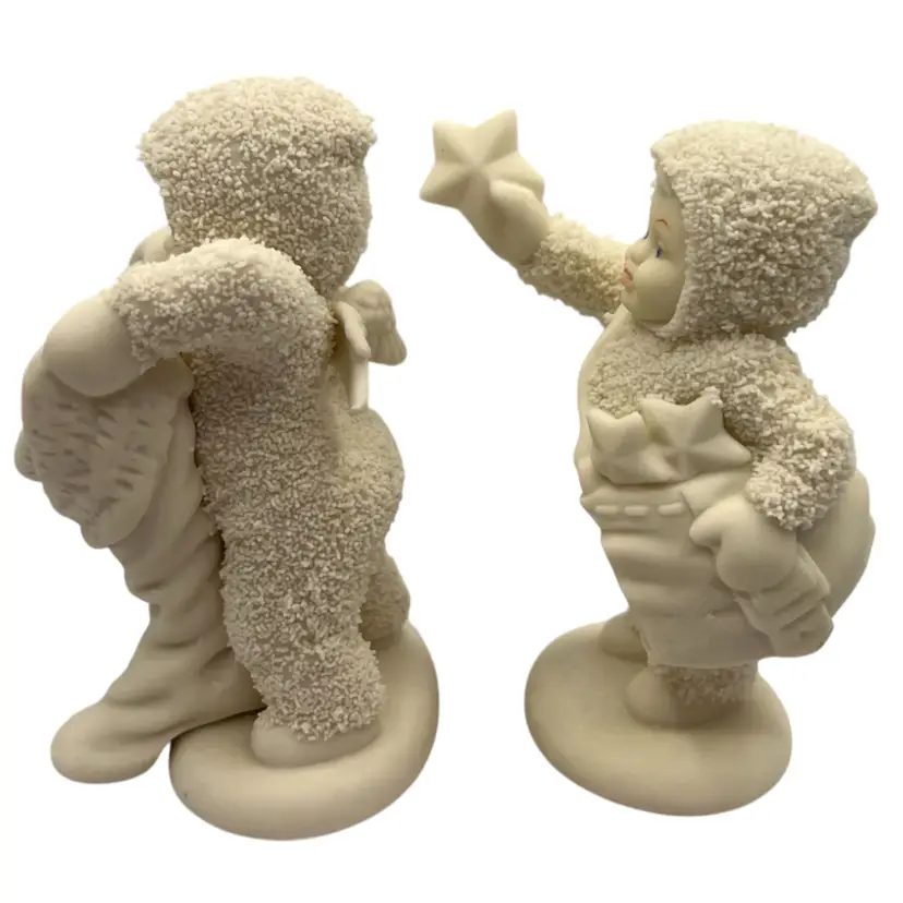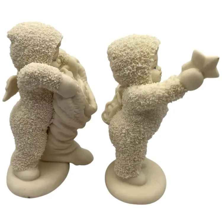 DEPT 56 SNOWBABIES WINTER TALES “WITH HUGS AND KISSES” THESE SWEET ANGELS ARE MADE OF FINE PORCELAIN BISQUE AND IN EXCELLENT CONDITION #68813 RETIRED UB 1998. HAND PAINTED WITH HAND APPLIED FROSTY BISQUE IN TAIWAN EXCLUSIVELY FOR DEPT 56.