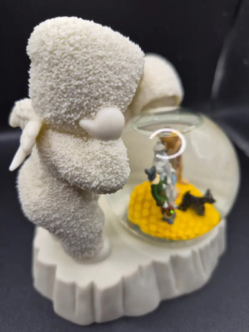 • Features a Wizard of Oz scene in a snow globe • Textured white figurines with angel wings • Hand-painted, intricate detailing • Sturdy resin construction