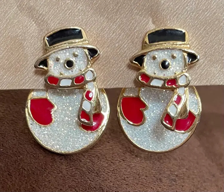 Super cute and fun snowman earring for this coming winter!!! The back to the post is the body of the snowman. The dime is for size reference only. Please view all of my photos as they help me to describe this sweet, adorable pair. As always, thank you for visiting my store!!!! 💗
