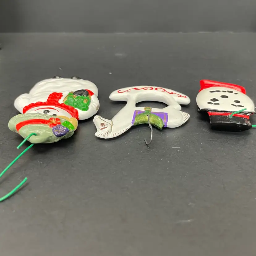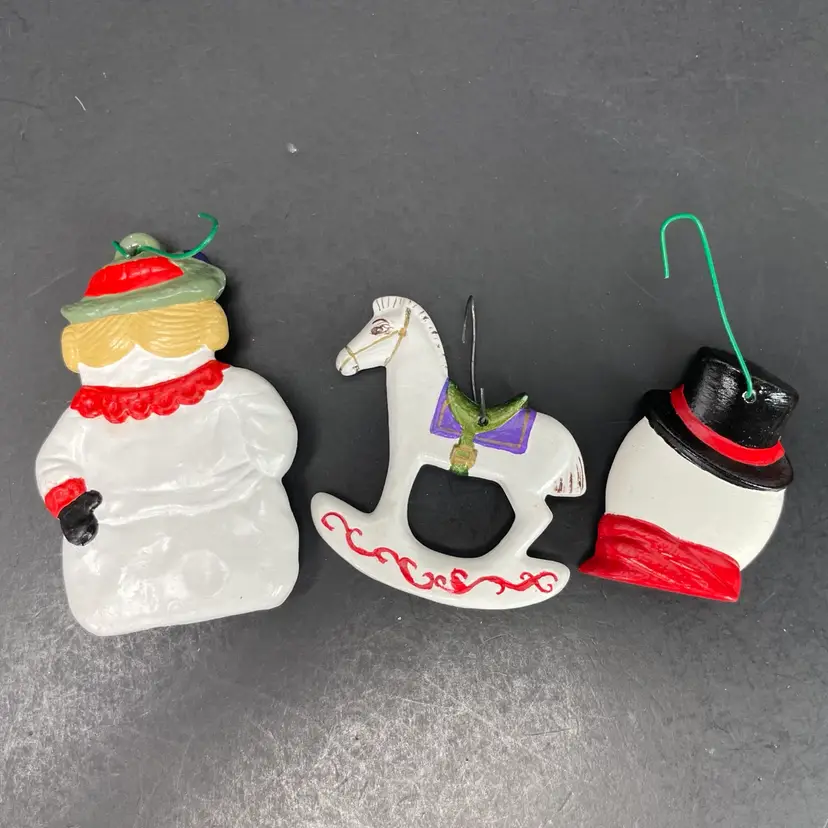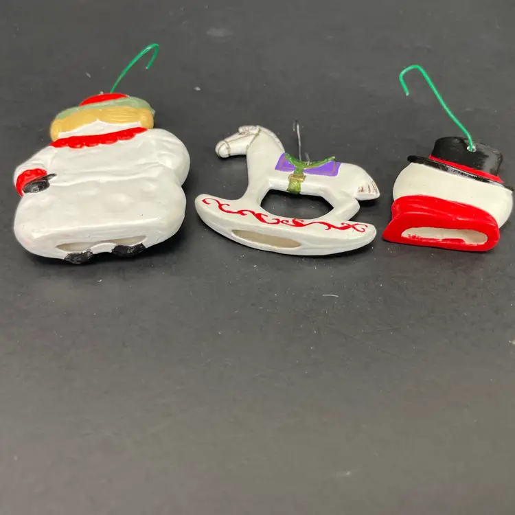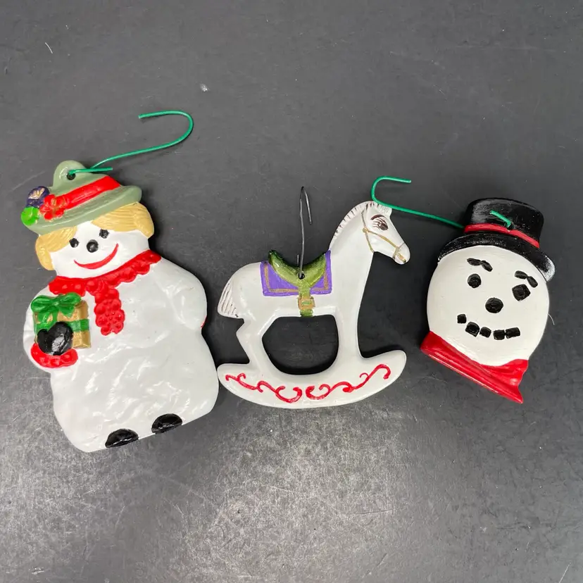 Snowman Rocking Horse Snowman Face 3 Christmas Ornaments Holiday Seasonal Decor Approximate measurements: 2in Condition: pre owned. No noticeable flaws. See photos. EbEtPoMeNn