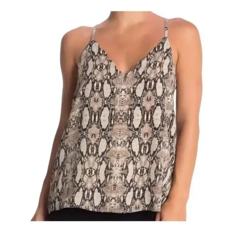 tan black python snake print rocker stylish Scallop Cami Sleeveless V-neck Casual Office Summer Layering Minimalist Classic Chic Preppy classy dressy summer summer style fashion