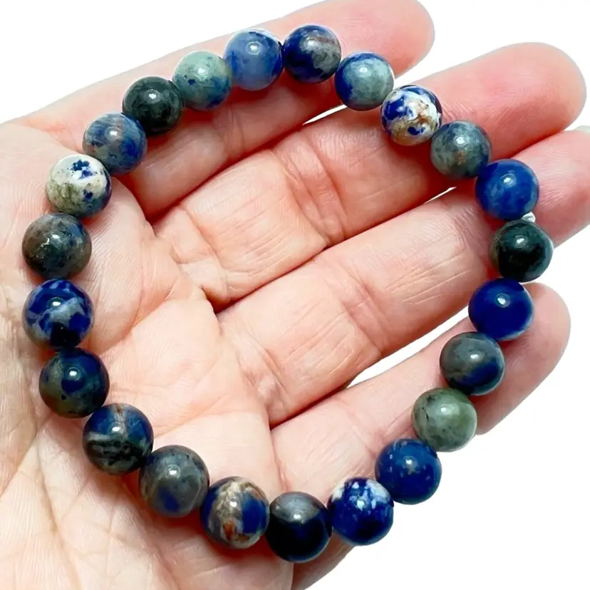 8mm sodalite beads 7” stretch bracelet High quality beautiful blues, greens, and white stones (not cheap Temu or Alibaba) New, not used