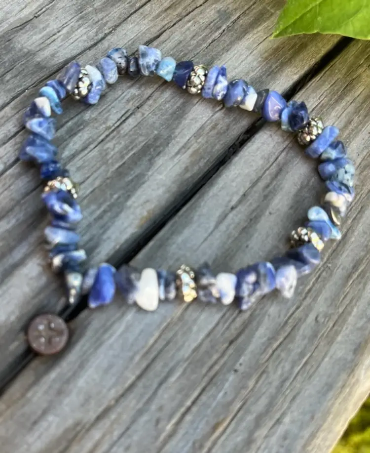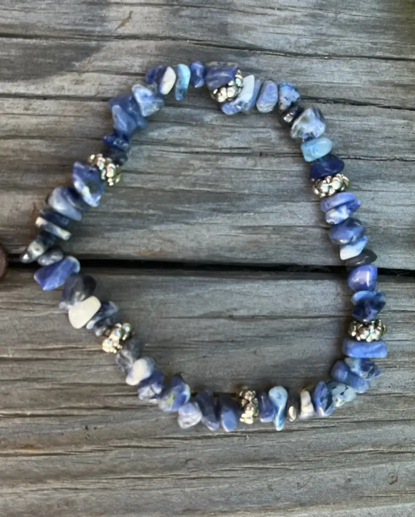 A sodalite Stretch Bracelet. It will fit a 8 to 9 inch wrist.