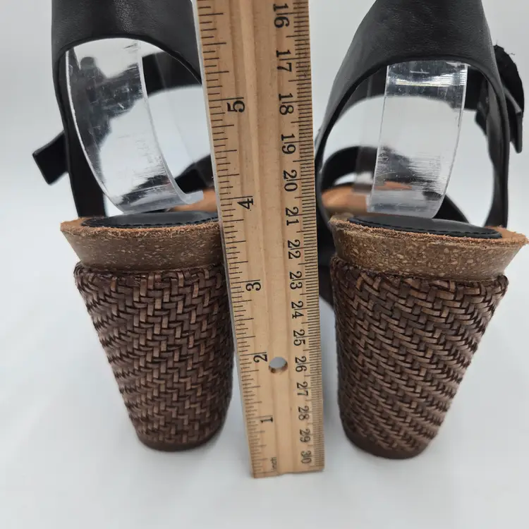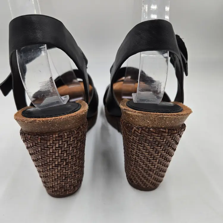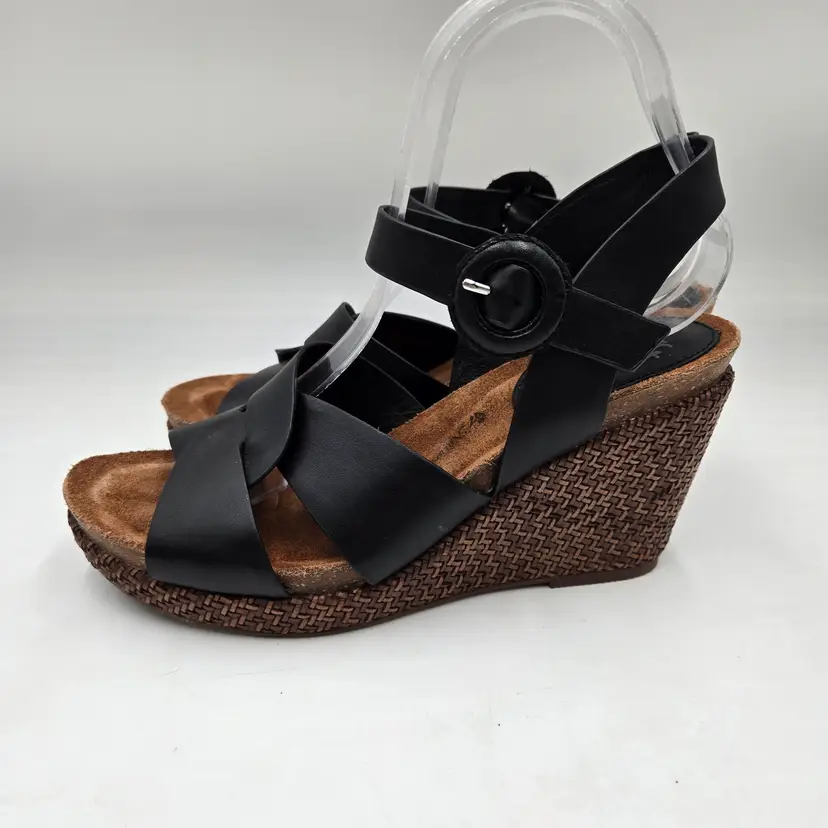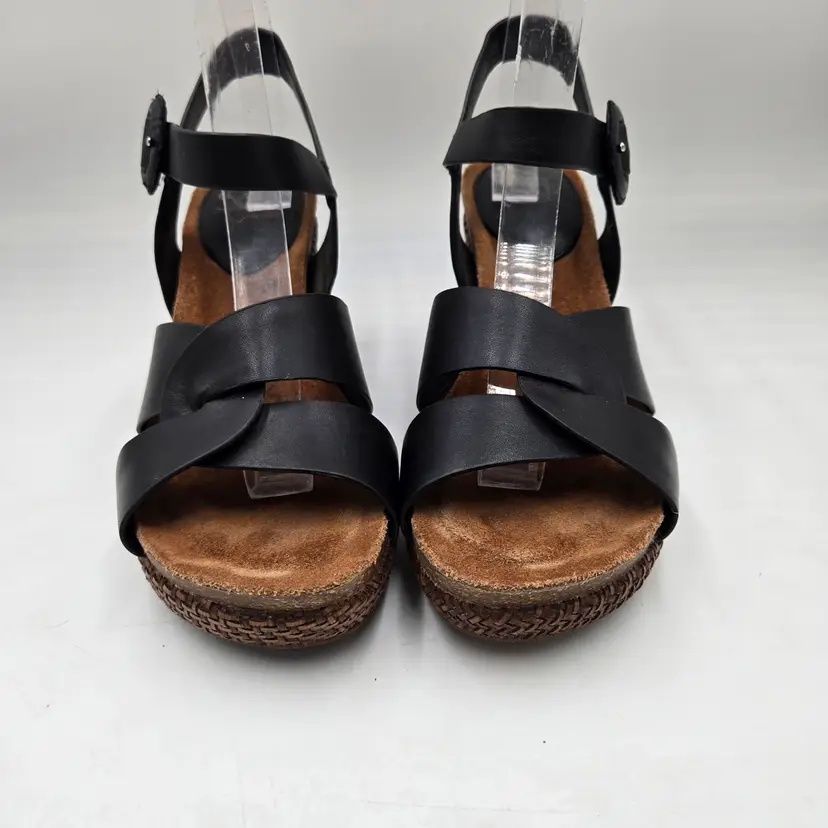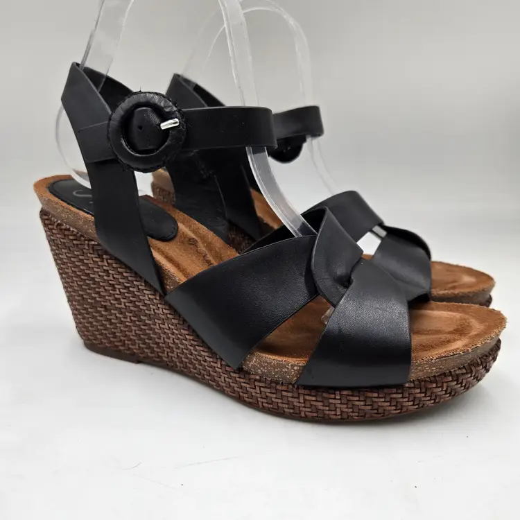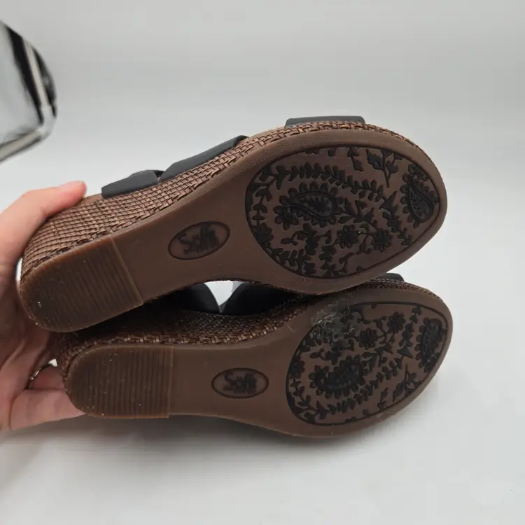SOFFT Wedge Espadrille Sandal Wedges in Black Leather size 9 M Criss Cross
