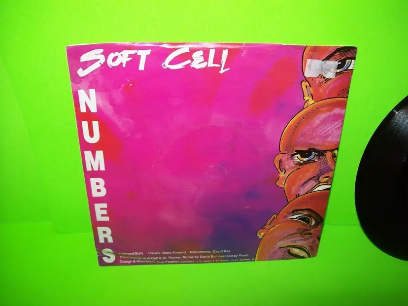Artist: Soft Cell Speed: 45 RPM Record Label: Some Bizzare Release Title: Numbers Case Type: Cardboard Sleeve Custom Bundle: No Color: Black MPN: BZS 17 Material: Vinyl Inlay Condition: Very Good Plus (VG+) Modified Item: No Edition: First Edition Type: Single Record Grading: Near Mint (NM or M-) Format: Record Sleeve Grading: Very Good (VG) Release Year: 1983 Language: English Era: 1980s Record Size: 7" Style: New Wave, Synth-Pop Features: Import Genre: Dance & Electronica Country/Region of Manufacture: United Kingdom