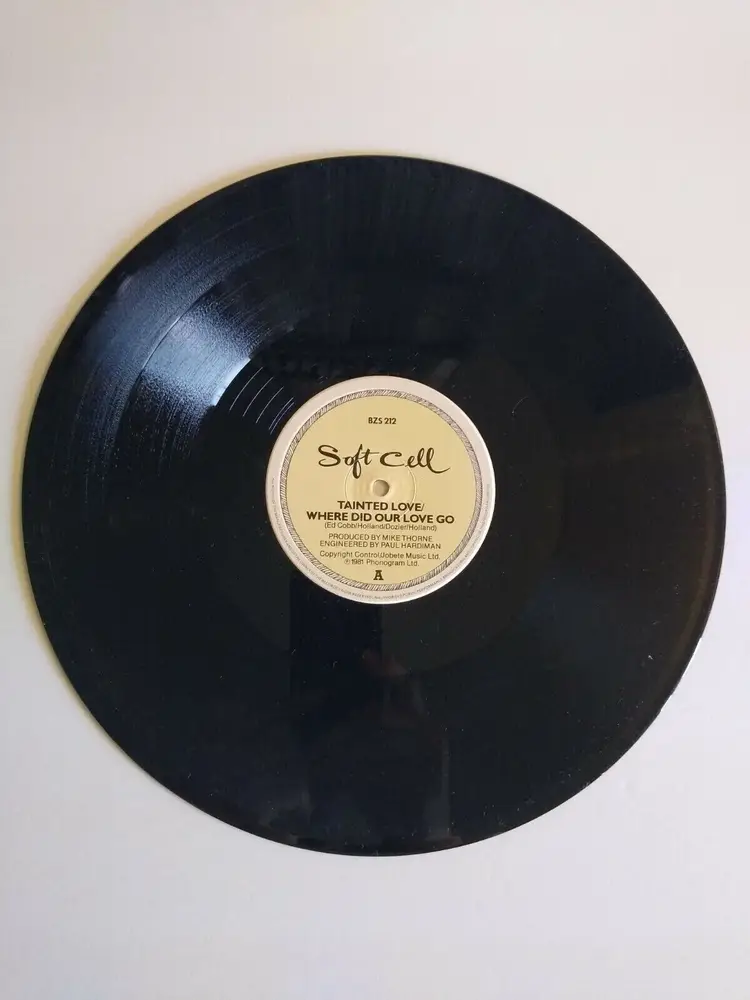 Artist: Soft Cell Speed: 45 RPM Record Label: Some Bizzare Release Title: Tainted Love Case Type: Cardboard Sleeve Custom Bundle: No Color: Black MPN: BZS 212 Material: Vinyl Inlay Condition: Very Good Plus (VG+) Edition: First Pressing Modified Item: No Type: EP Record Grading: Excellent (EX) Format: Record Release Year: 1981 Language: English Sleeve Grading: Very Good Plus (VG+) Era: 1980s Style: 1980s, Dance Pop, Synth-Pop, New Wave Record Size: 12" Features: Original Cover Genre: Dance & Electronica Country/Region of Manufacture: United Kingdom