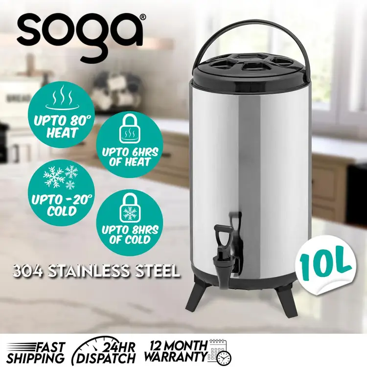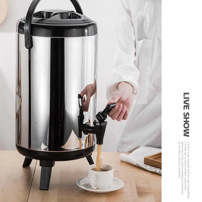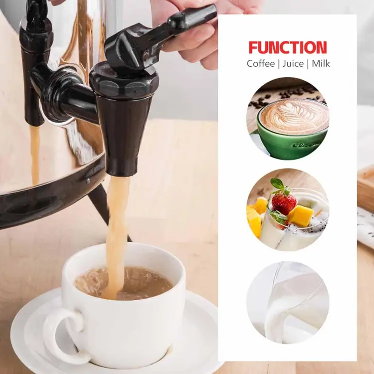 Features: With the unique and bright appearance, luxuriant style, not easily deformed, invulnerability to breakage and easy to clean appearance. Made with #304 stainless steel, which will not rust, strong and durable. Heat-resisting temperature: 80 degrees, resistant to cold temperature: - 20 degrees Groove anti-clogging design to ensure that drinks will not accumulate at the bottom Heat preservation can be up to 6 hours, cold time can be up to 8 hours, with all kinds of delicious tea, cold, hot coffee, juice, keeping flavor. Tap is made of nylon resin, can heat temperature of 200 degrees. The tap can be used for a long time. Factors that will affect the changing of holding time is using it in a different environment, especially when in climate conditions (ambient temperature whether it's filled, or preheating, etc.) The insulated temperature for 12 hours is 93C which will slowly decrease to 35C, especially in high-temperature degrees that only last for a few hours. Using indoors is highly recommended. The insulator cannot keep the liquid at a stable temperature. Its role is only to slow down the rate of temperature drop.