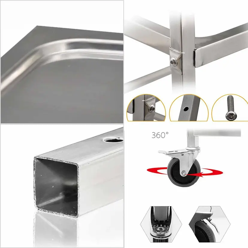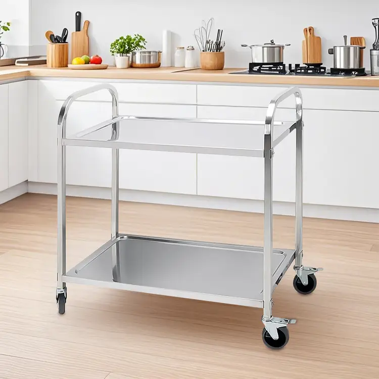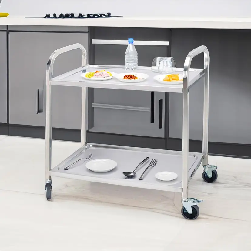 ✔ Durable Stainless Steel - Made from 100% commercial-grade stainless steel—strong, rust-resistant, and built to last. ✔ Spacious 2-Tier Design - Plenty of room for tools, ingredients, or appliances—everything stays organized and within reach. ✔ Easy to Move, Easy to Lock - comes with 4 smooth-rolling wheels, including 2 with locks to keep the cart steady when needed. ✔ Quick Assembly - Tool-free setup and flat-packed for easy transport and storage. ✔ Multi-Purpose Use - Great for kitchens, cafes, workshops, or even as a serving cart at home.