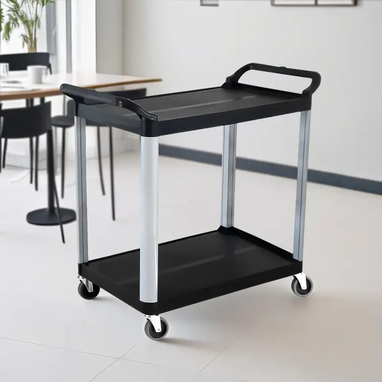 ✔ Easy organization and effective transportation of materials in the kitchen, garages, and catering. ✔ 2 Tiers: Both shelves have a 61.5cm distance. Each tier has a capacity of 40 kg. ✔ It has red comfort grip handles and anti-rust aluminum legs. ✔ Longer Durability ✔ Easy to assemble, clean, and maintain.