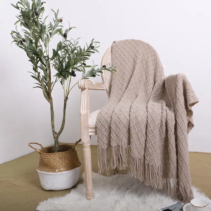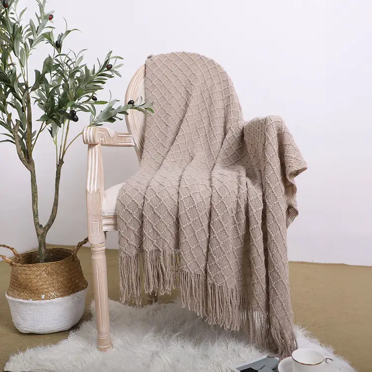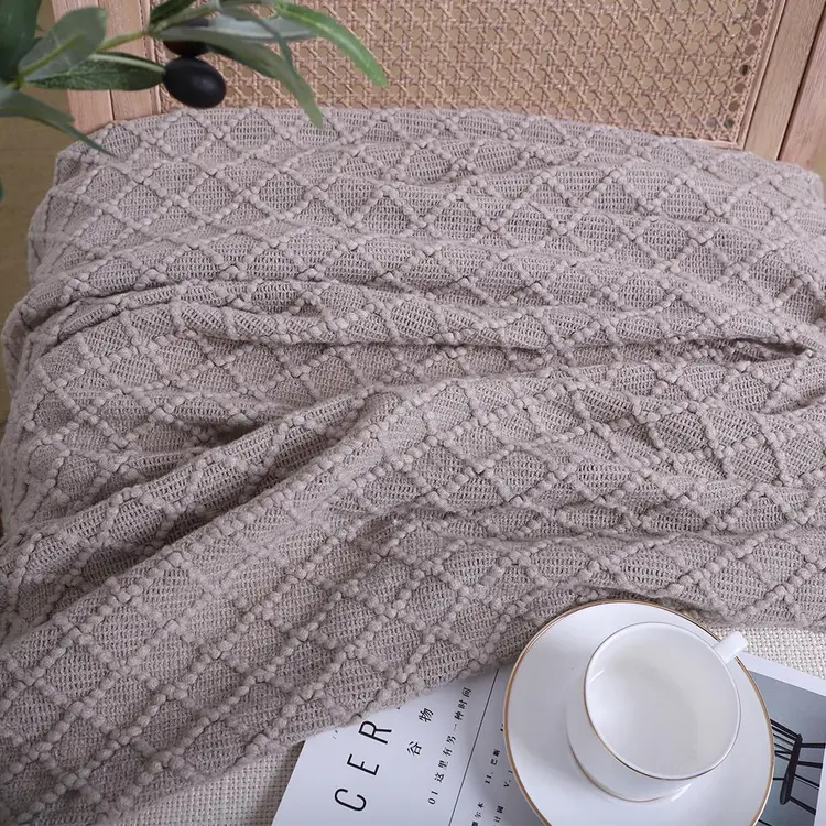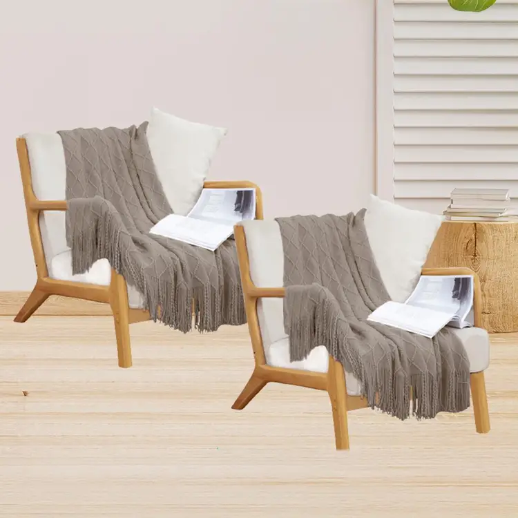 ✔ 2X SOGA Coffee Diamond Pattern Knitted Throw Blanket