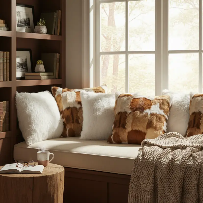 Stylish Patchwork Design: Cowhide-inspired patterns add a trendy, contemporary accent that enhances visual interest.