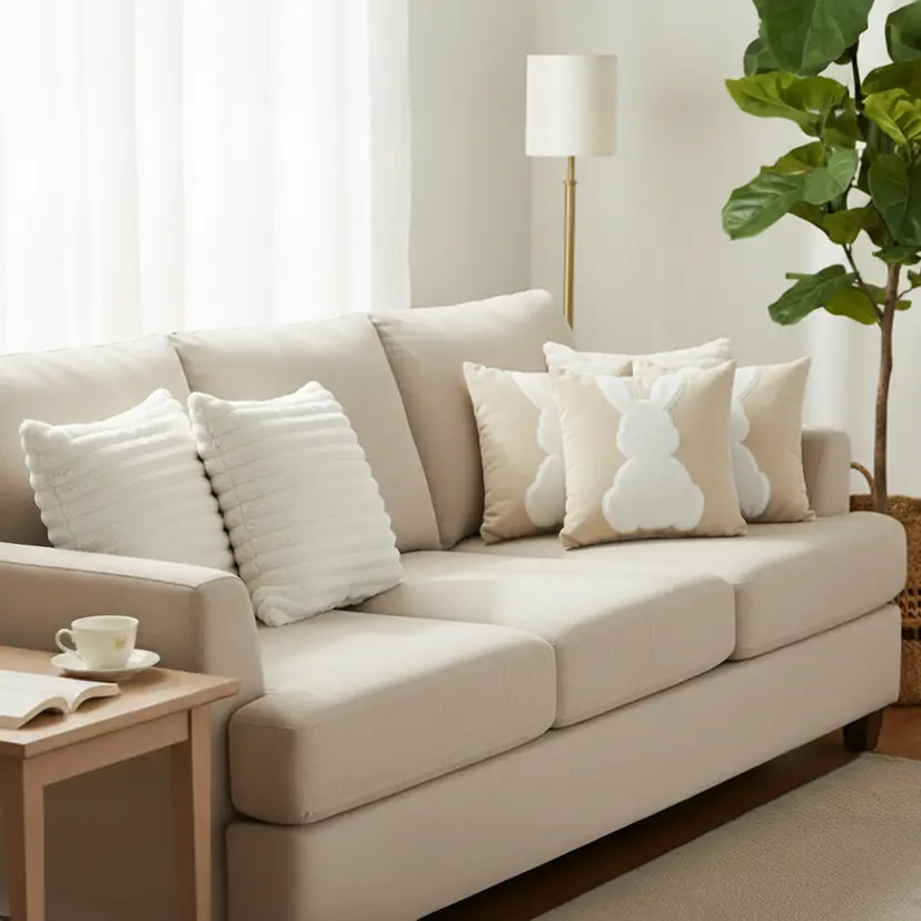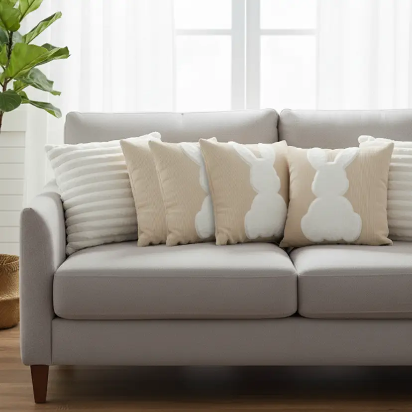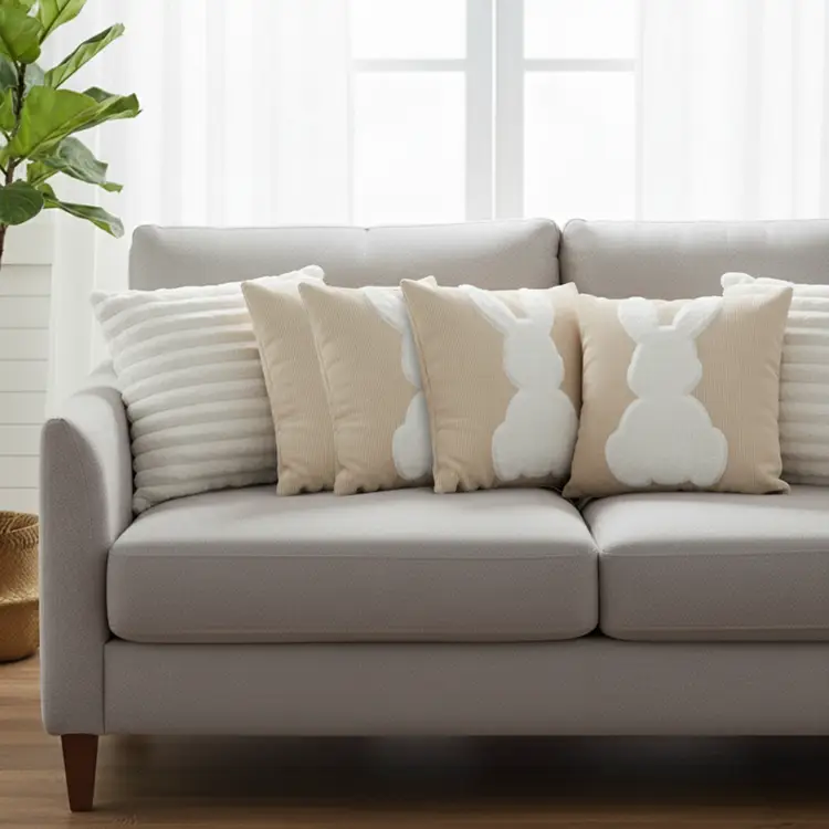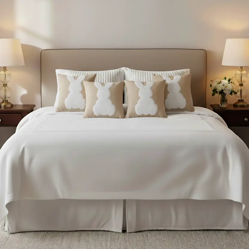 Charming & Stylish Design: White textured pillowcases combined with cute white bunny prints add warmth, personality, and visual appeal.