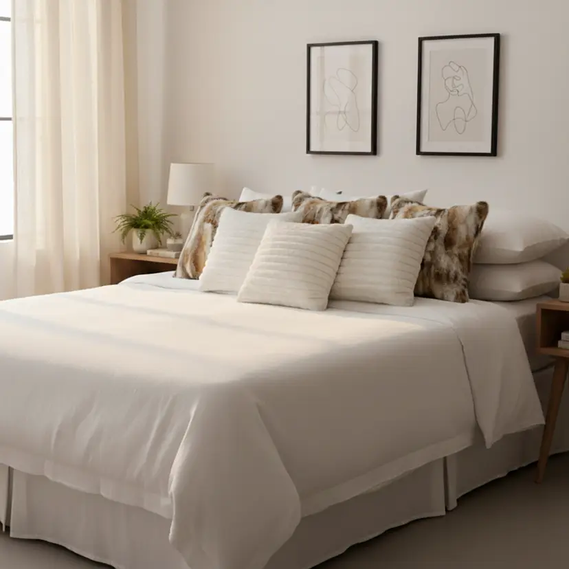 Luxurious & Elegant Design: Mix of plush faux fur and white textured fabric adds depth, comfort, and visual appeal.