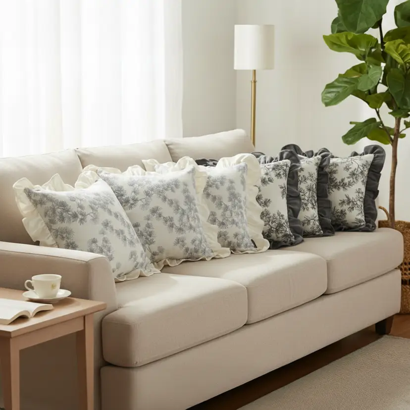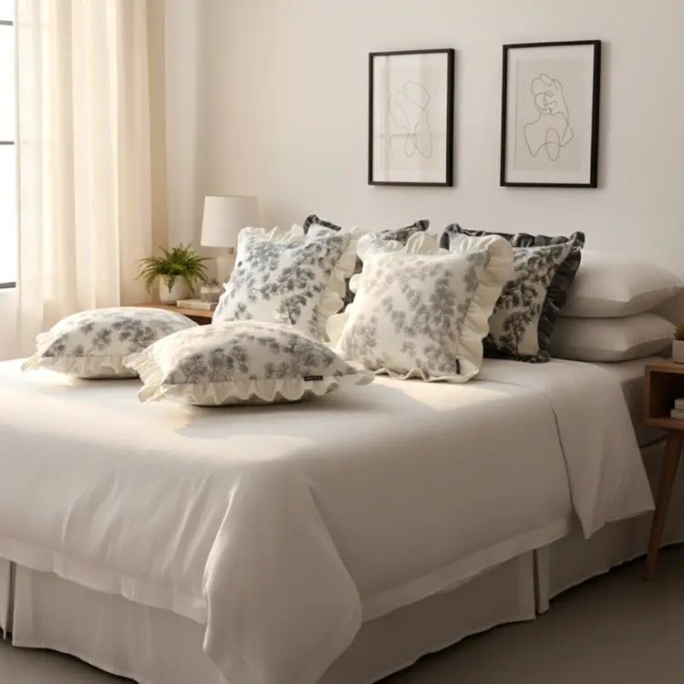 Elegant & Charming Design: Gray and white floral patterns with ruffle trim add sophistication, texture, and visual appeal.
