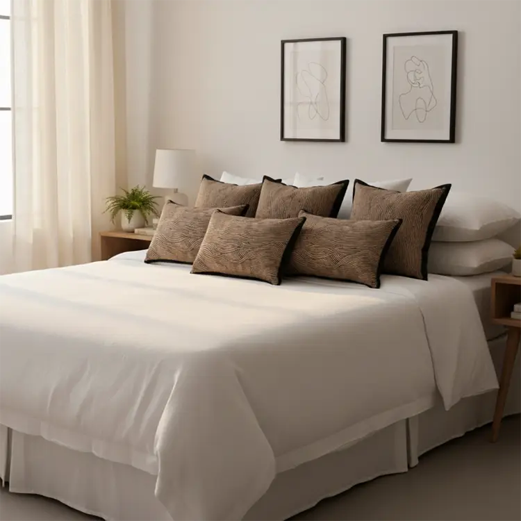 Elegant Textured Design: Features wave patterns on both square and lumbar pillow covers for a modern, layered look.