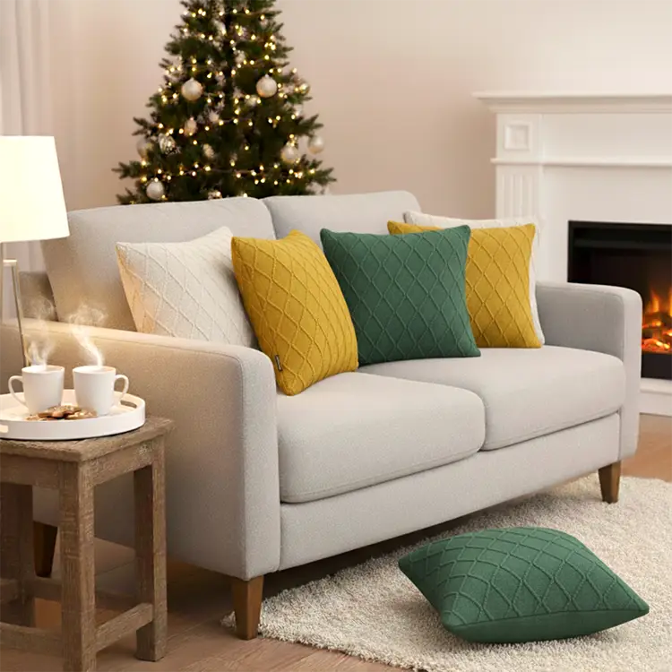 Vibrant & Coordinated Design: Sunshine yellow, forest green, and cream cable knit diamond patterns add a layered, cheerful, and elegant look.
