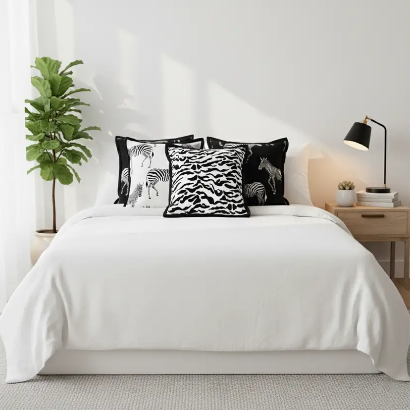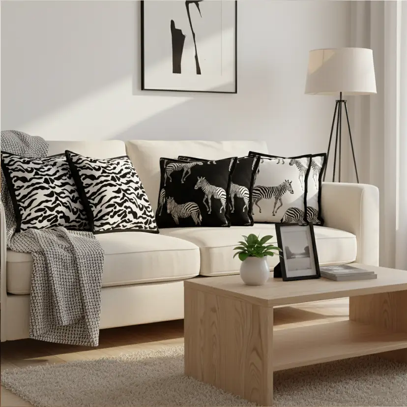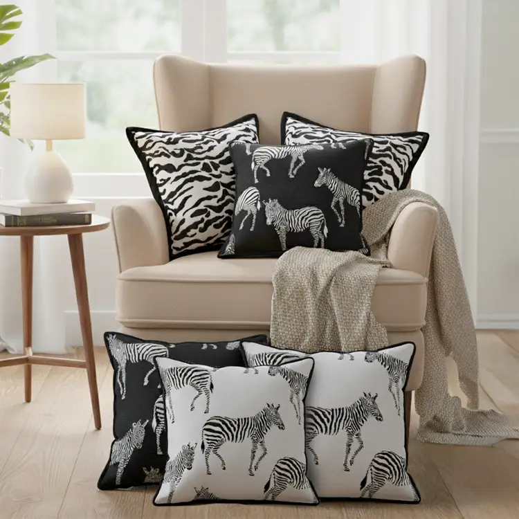 Wildlife & Safari Design: Zebra patterns and abstract safari accents add visual interest and a bold, modern statement to any room.