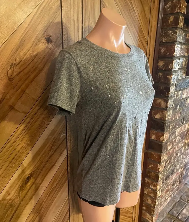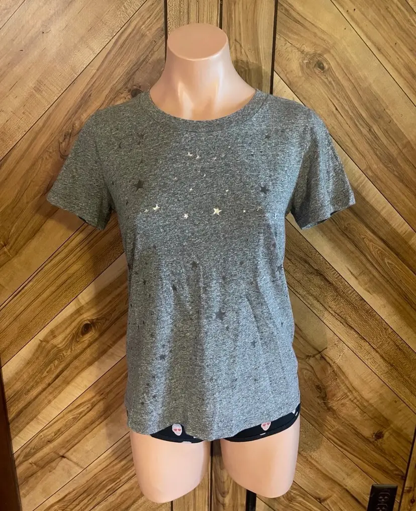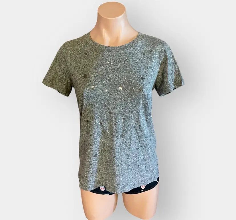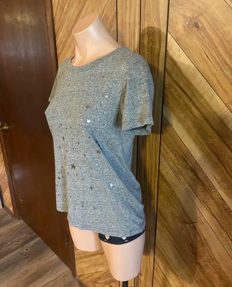 Crafted with a classic crew neckline and a relaxed fit, this tee is perfect for layering or wearing on its own with your favorite denim. The soft heathered fabric ensures all-day comfort while maintaining a stylish, boutique-inspired look. • Condition: Very Good Used Condition (VGUC) • Size: Women's XS • Color: Heather Gray with Silver Foil Stars • Material: Soft cotton blend (typical of Sol Angeles)