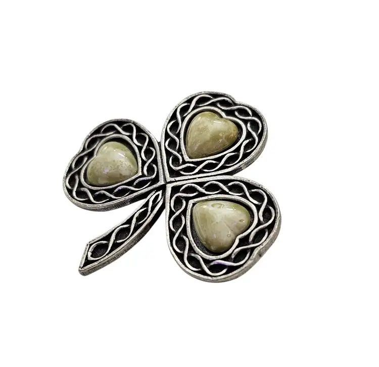 Sol D'Or Silver Tone Shamrock Heart Shaped Stone Pin Signed, C80