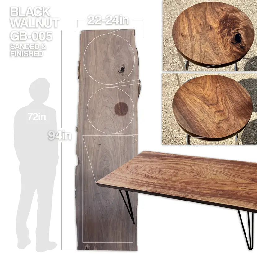 This is a solid, Walnut Coffee Table on custom steel mid-century style legs, cut from the same kiln dried slab as the Round Nested Table Pair. This table is hand sanded and surfaced with a food grade oil+wax finish, and detailed with lightly beveled edges. It's beautiful from all angles! ๐