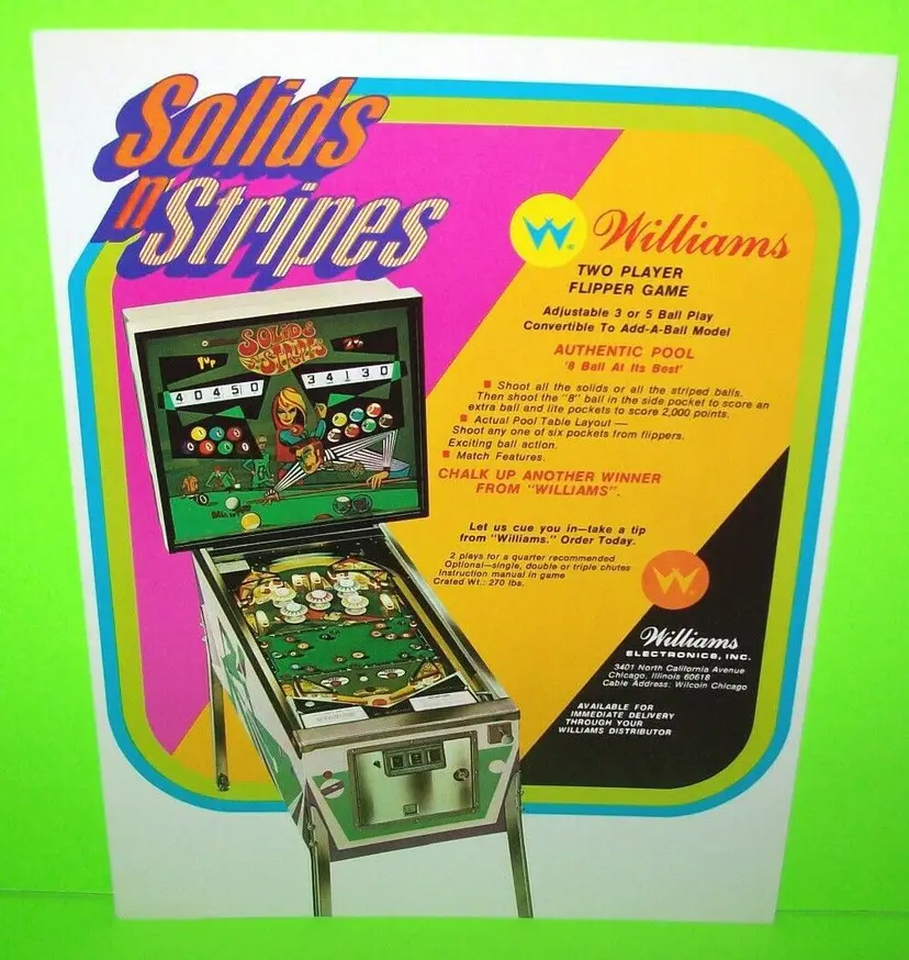 Modified Item: No Country/Region of Manufacture: United States Year: 1971 Brand: Williams Model: Solids N Stripes Theme: Pool Original: Paper Advertising Pinball: Flyer