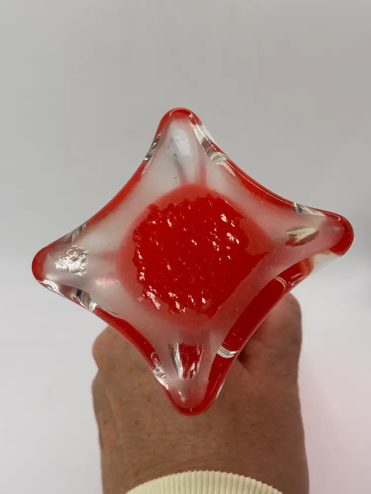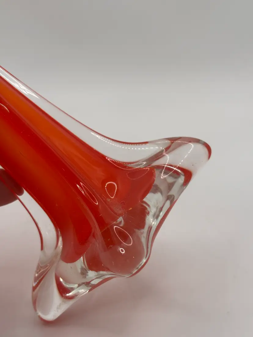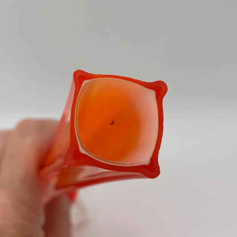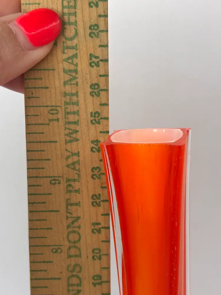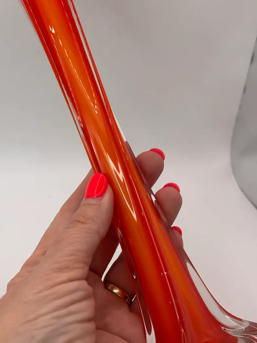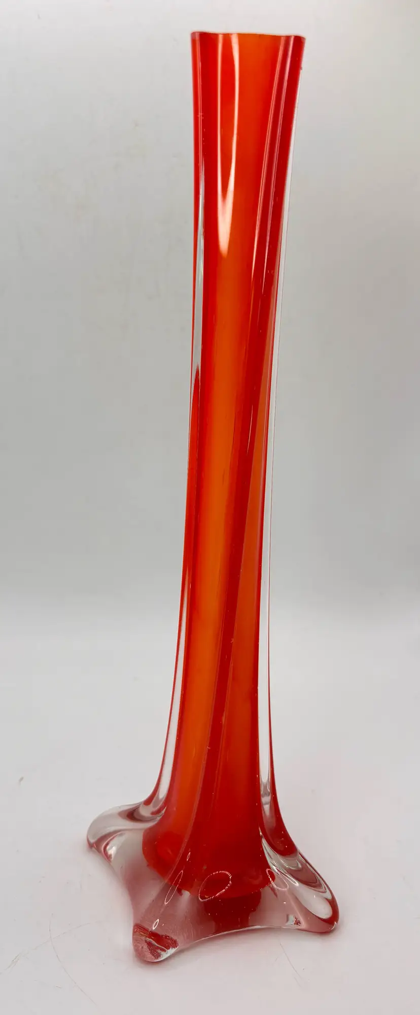 Beautiful cased glass bud vase, unmarked possibly Murano. 9.75 in tall - polished smooth base