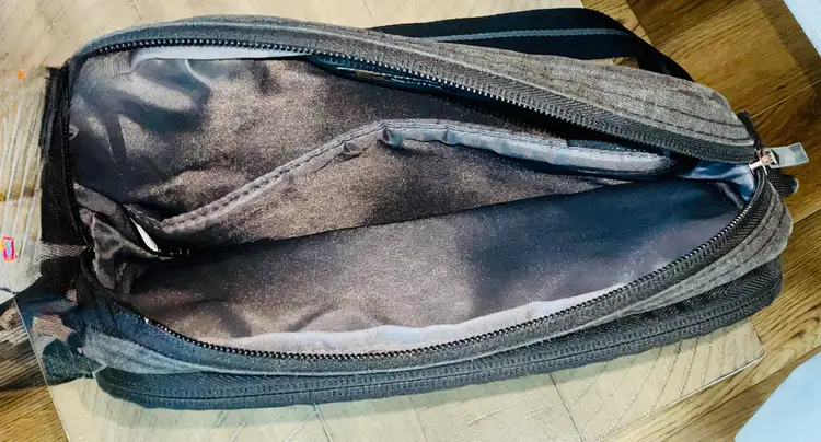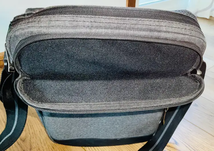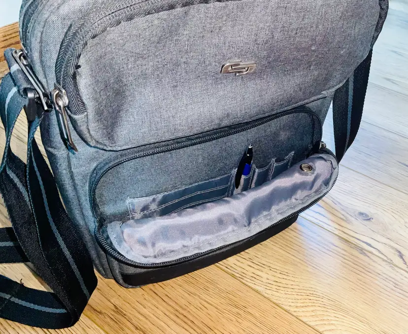 This is a great bag for those who like to be on the go with a minimalist vibe but still be able to carry an IPad. The top front mini pocket is great for sunglasses as it has a nice soft lining and the bottom pocket provides great organization. The bag is in great shape and has a fantastic aesthetic. The main pocket has a designated tablet sleeve and still has space for over ear headphones or a light hoodie.