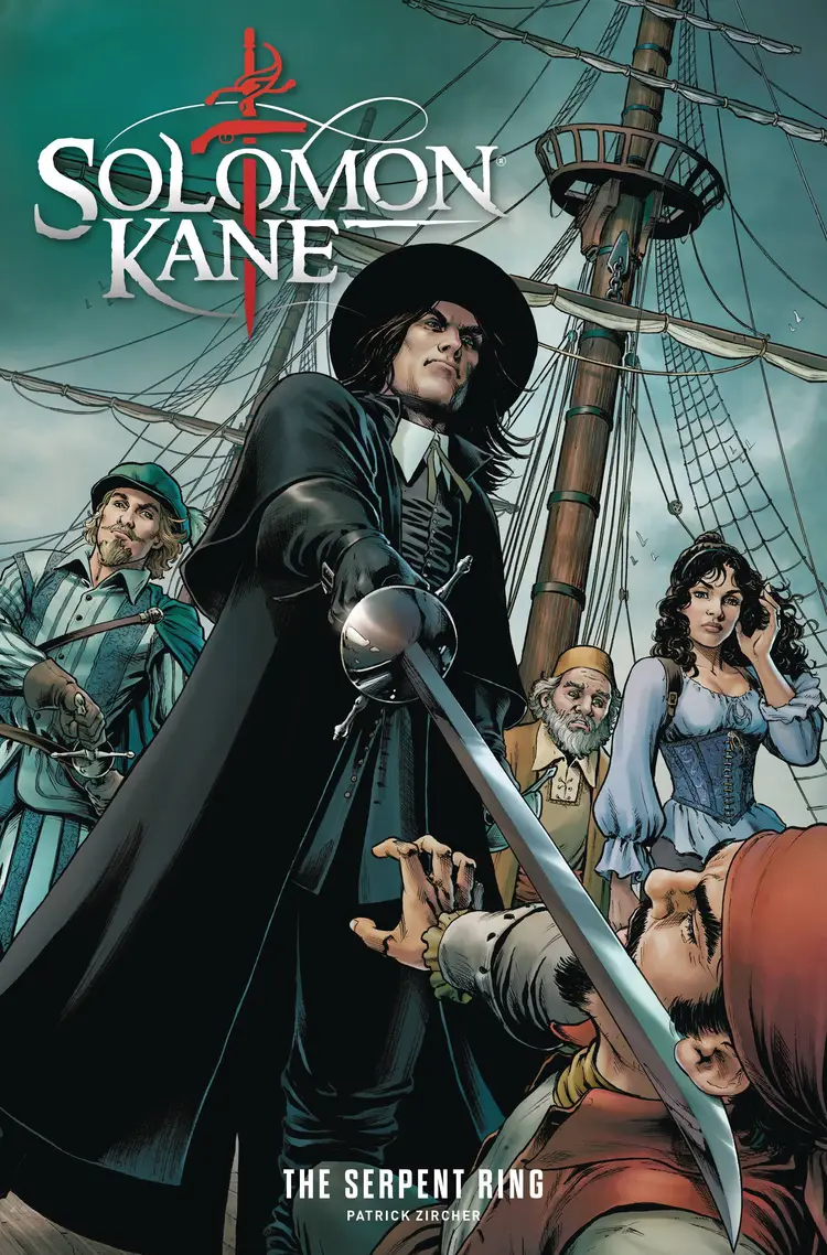 SOLOMON KANE IS BACK! The 'Sword of Vengeance' slashes into his own new series, SOLOMON KANE: THE SERPENT RING! Kane battles from the Barbary Coast; across Southern Europe, to the canals of Venice, as a band of rogues forms around him in their quest for the fabled Serpent Ring of Set! It's the much-anticipated return of Solomon Kane from Patrick Zircher (Superman, Iron Man, Savage Avengers, Moon Knight)!