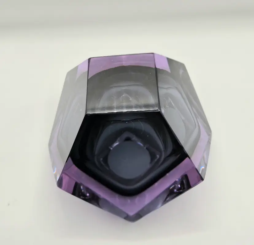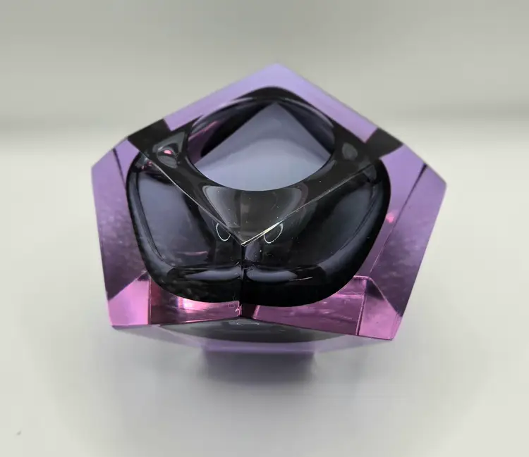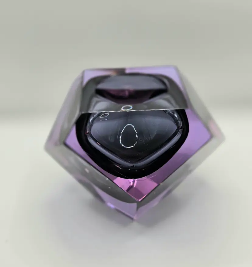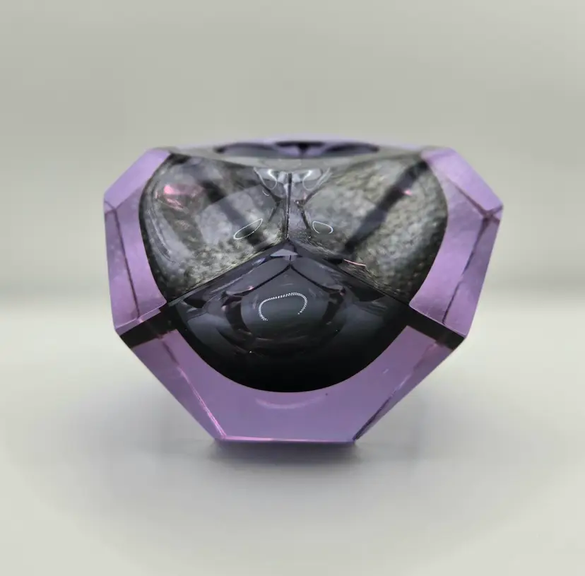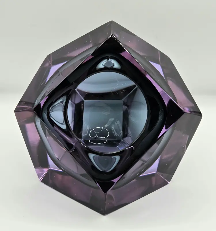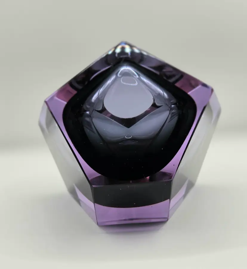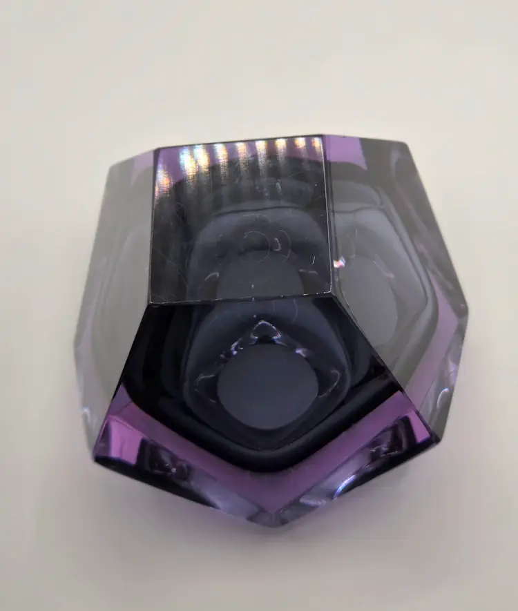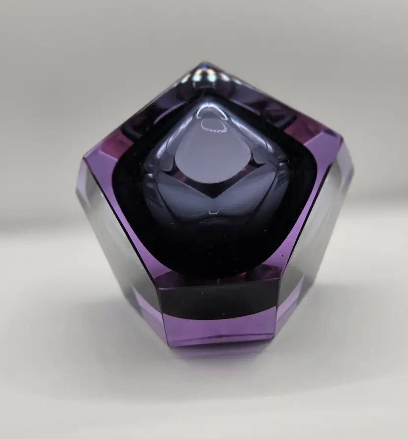 Neodymium Murano Sommerso Faceted Purple and Smoky Steel Blue Vase / Paperweight. 5" x 3.5" Excellent Condition. This Beautiful piece of art glass has no chips, cracks or bruises. Looks amazing displayed on its side. Perfect for your art glass or paperweight collection. There may be one very tiny scratch on base area but it's very hard to see.