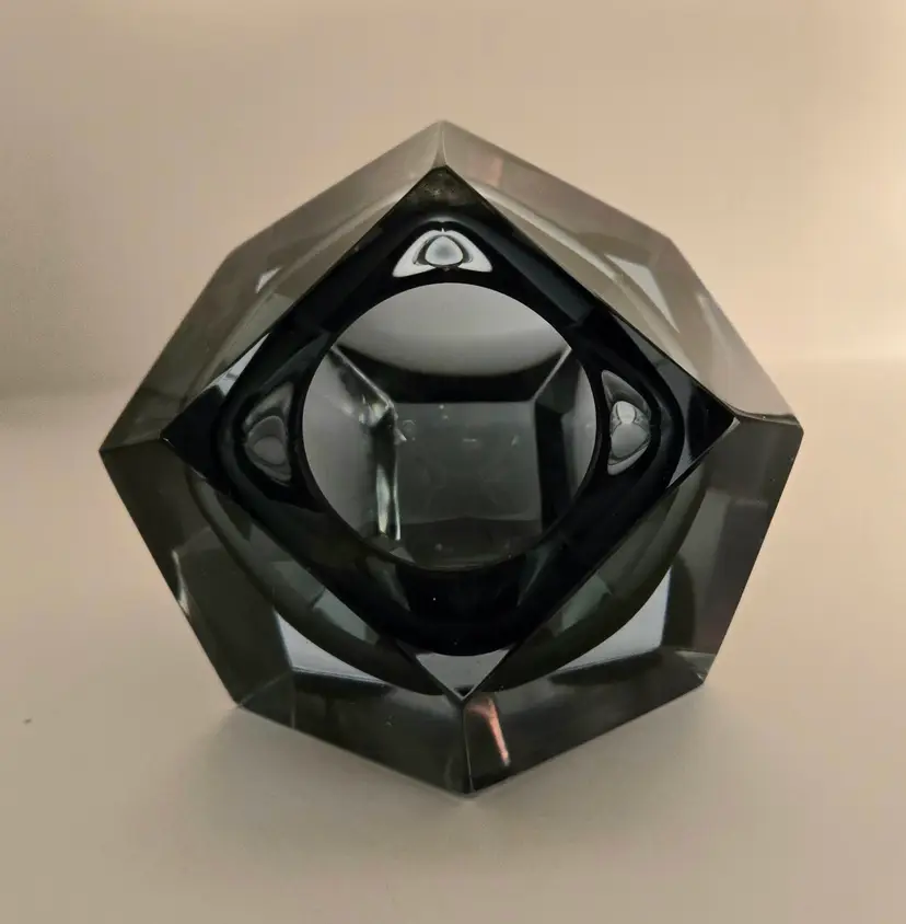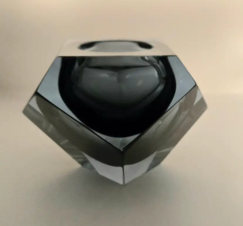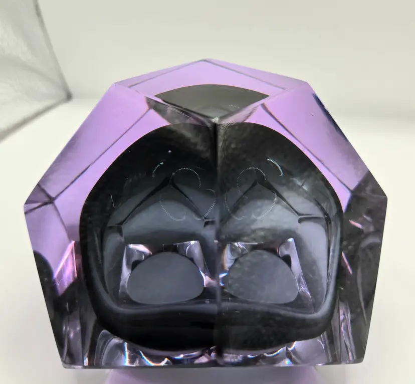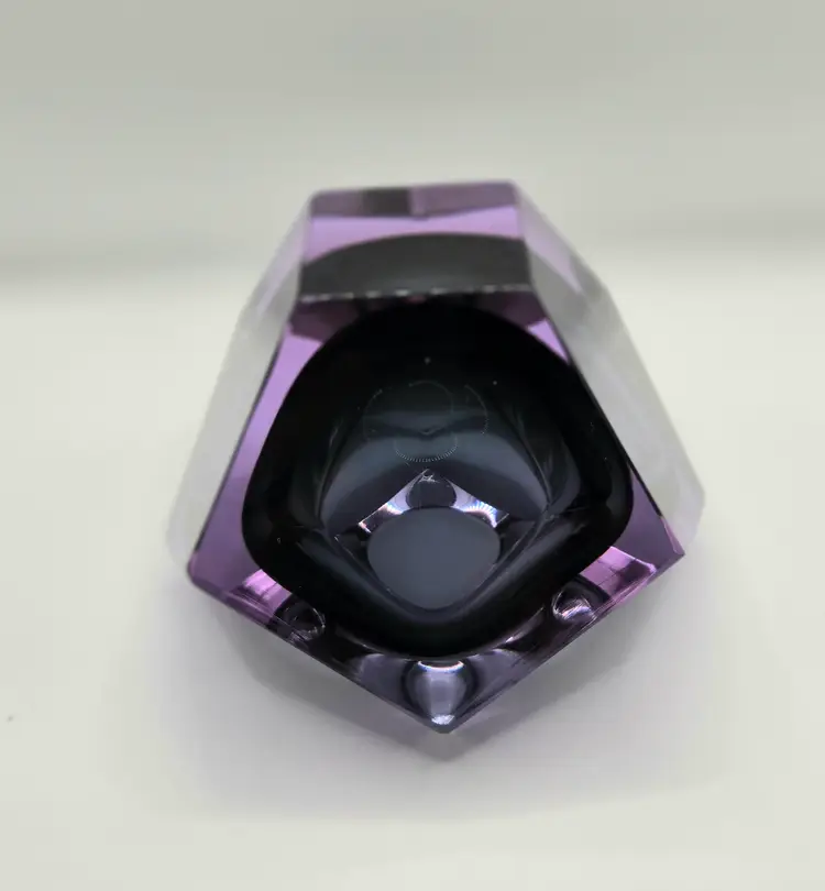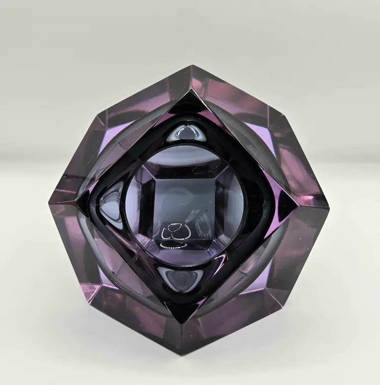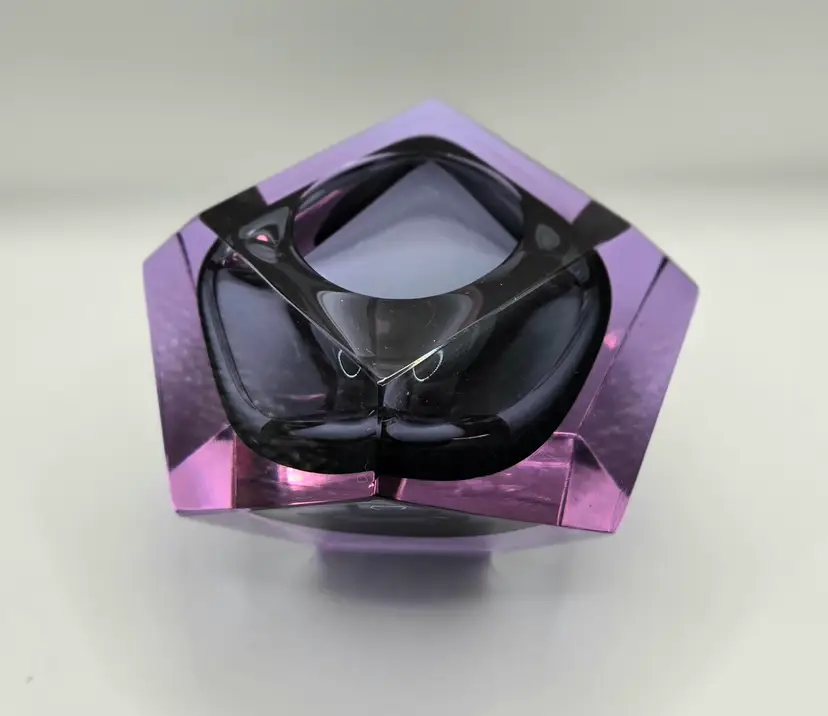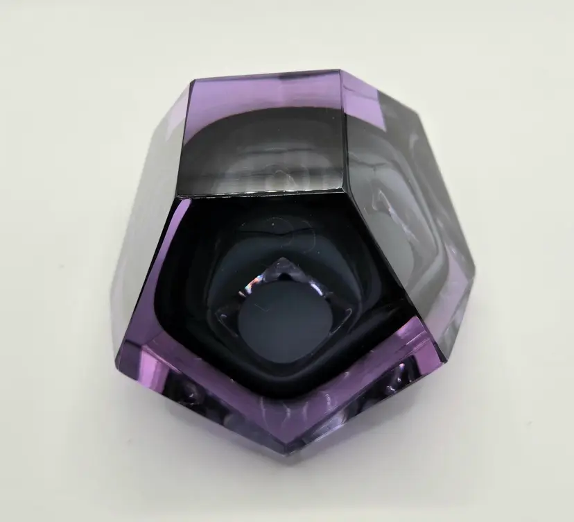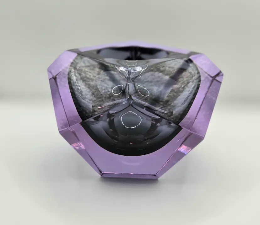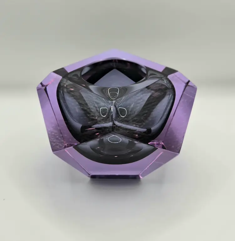 Neodymium Murano Sommerso Faceted Purple and Smoky Steel Blue Vase / Paperweight. 5" x 3.5" Excellent Condition. This Beautiful piece of art glass has no chips, cracks or bruises. Looks amazing displayed on its side. Perfect for your art glass or paperweight collection. There may be one very tiny scratch on base area but it's very hard to see.