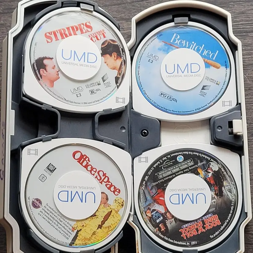 Sony Playstation PSP With 8 Games And 6 Movies Untested No Power Adapter Comes With All Items Shown including cases.