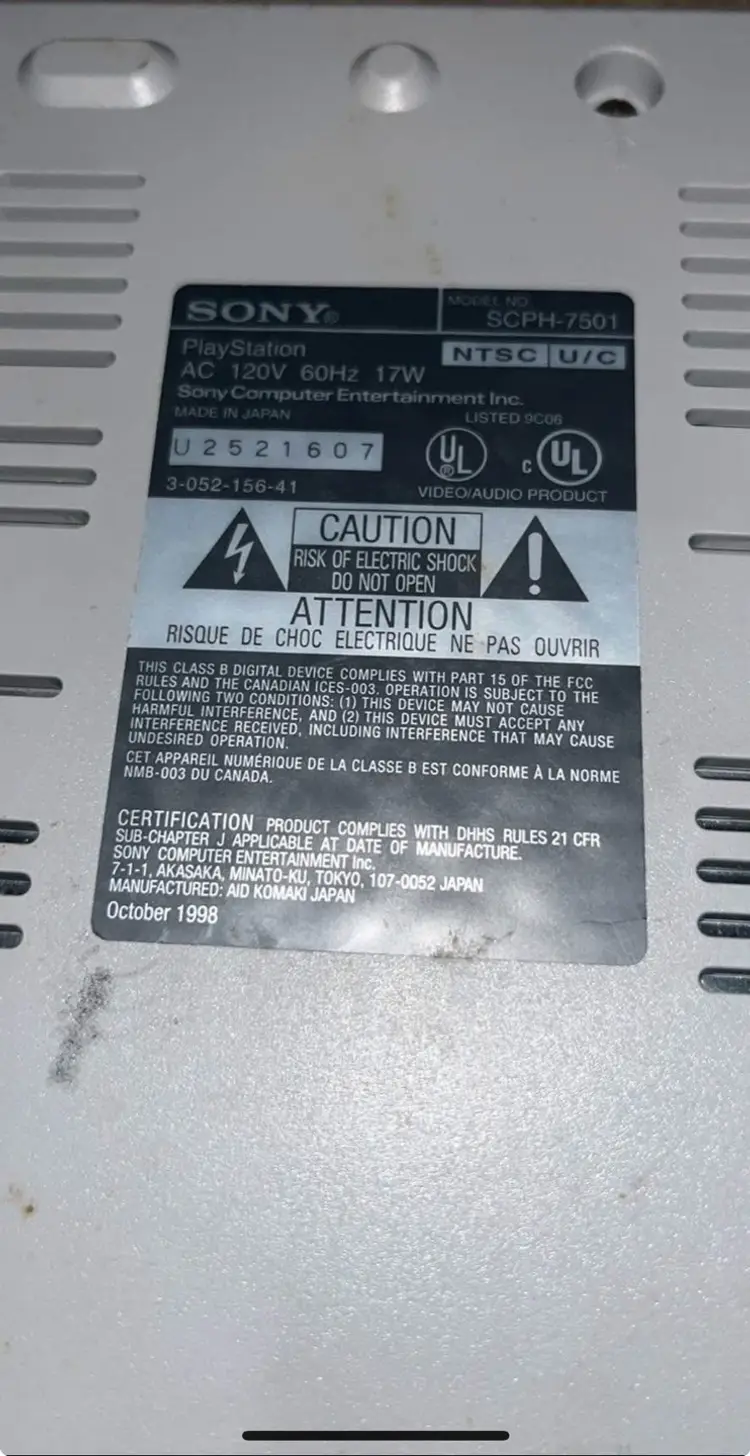 Sony PS1 SCPH-7501-Untested Console Only. Sold As is no returns