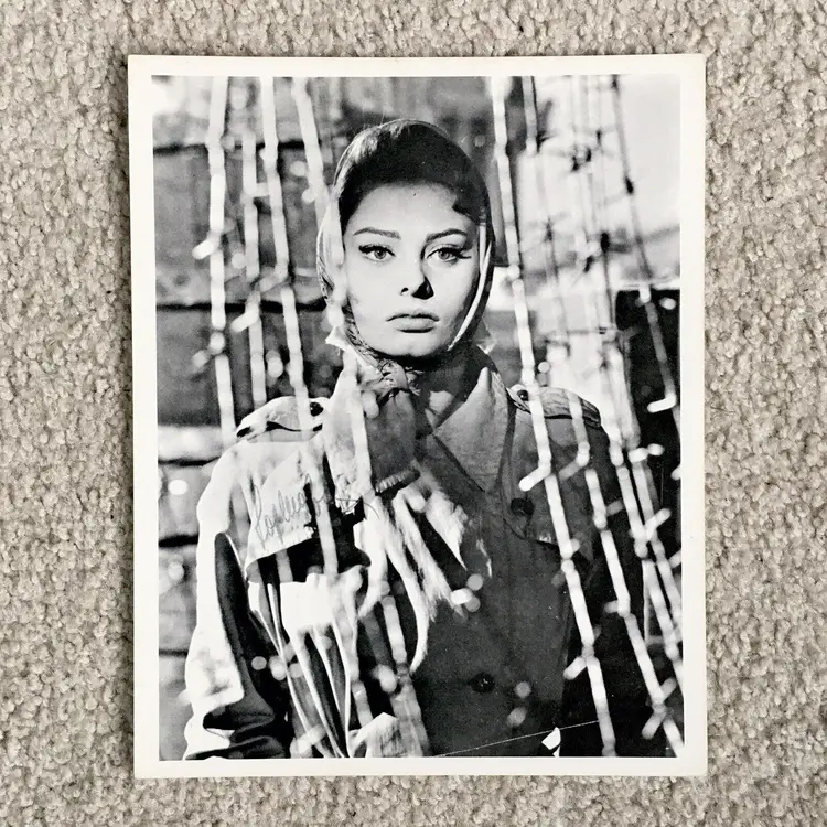 Black and white photo of legendary Italian actress Sophia Loren. This specific photo is somewhat hard to find. Sophia Loren was named by the American Film Institute as one of the greatest stars of classical Hollywood cinema and is the only remaining living person to appear on AFI's list of the 50 greatest stars of American film history. Excellent condition with no tears or stains. Number notation back top left corner. Photo measures about 8” x 10”. See pics for more details.