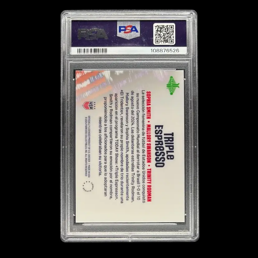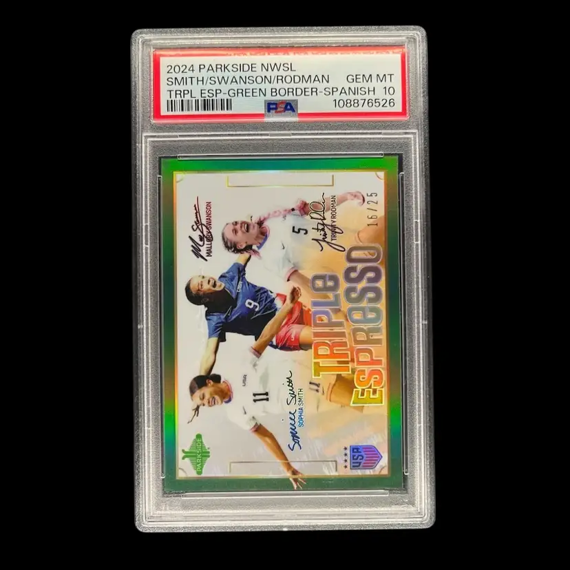 Sophia Smith, Trinity Rodman, Mallory Swanson 2024 Parkside NWSL Triple Espresso Green Border Spanish USWNT PSA 10