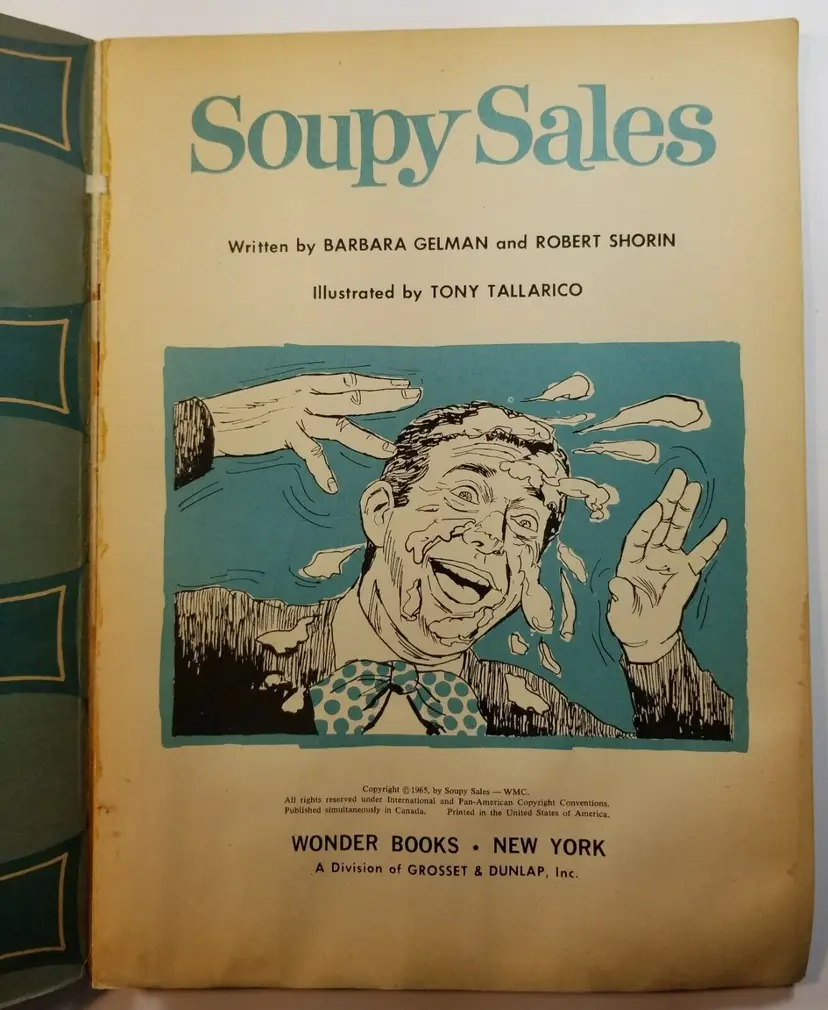 – Returns Accepted: Returns Accepted – Features: Illustrated – Series: Soupy Sales – Contributors: n/a – Topic: n/a – Publication Month: January – Country/Region of Manufacture: United States – Language: English – Publication Year: 1965 – Publication Name: Soupy Sales – Publisher: Wonder Books – Genre: Humor & Satire – ISSN: n/a