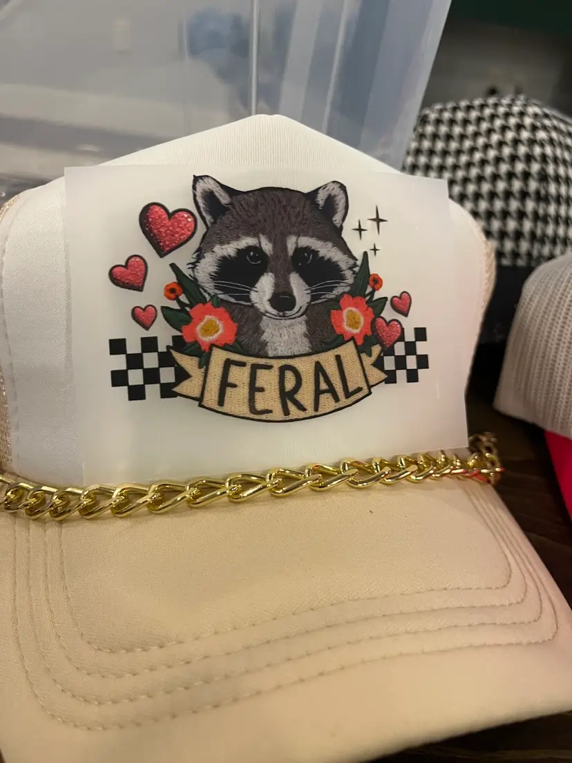 Adorable southern girl raccoon design on a light tan trucker hat!! Unisex style SnapBack adjustable hat! Design is DTF smooth transferChain accessories are available as an add on option!! Several available and I will send photos of options (multi gold tone, silver tone and pearl available!) If you want a different colored hat, please message me!!