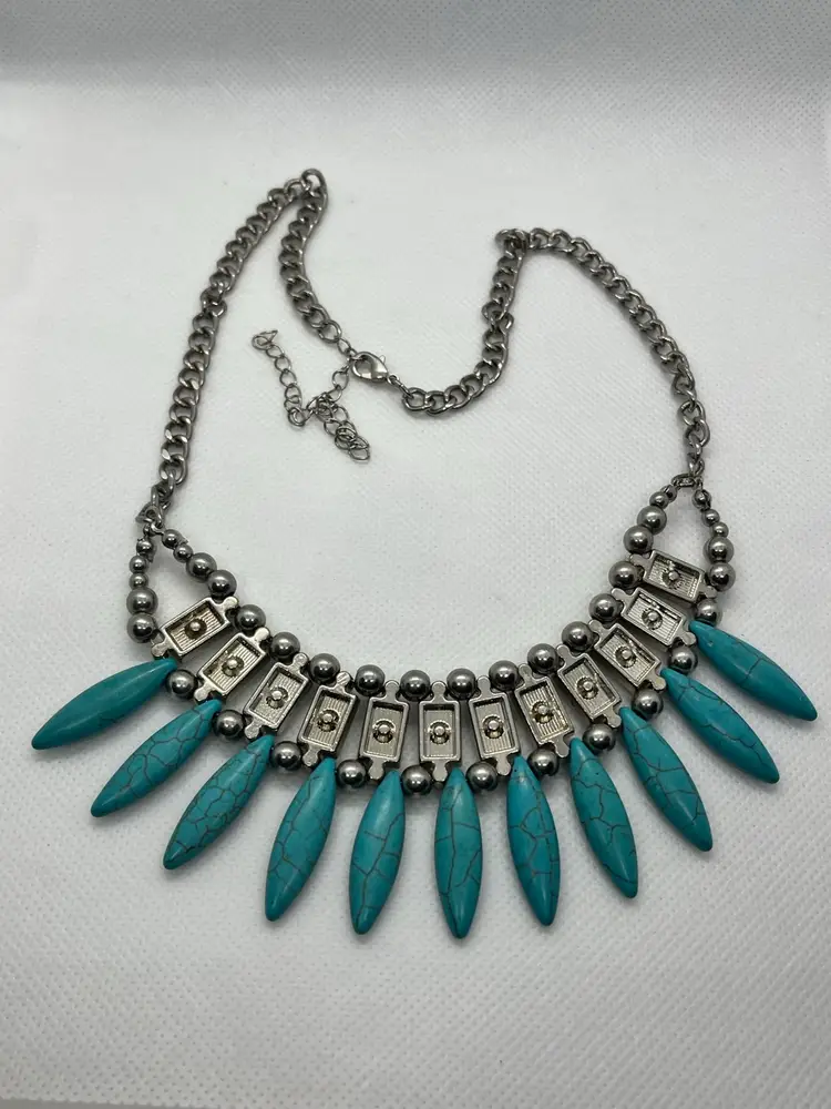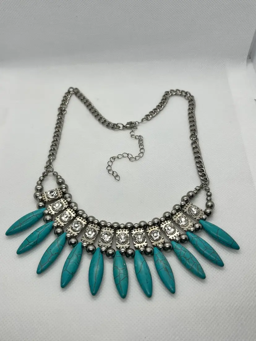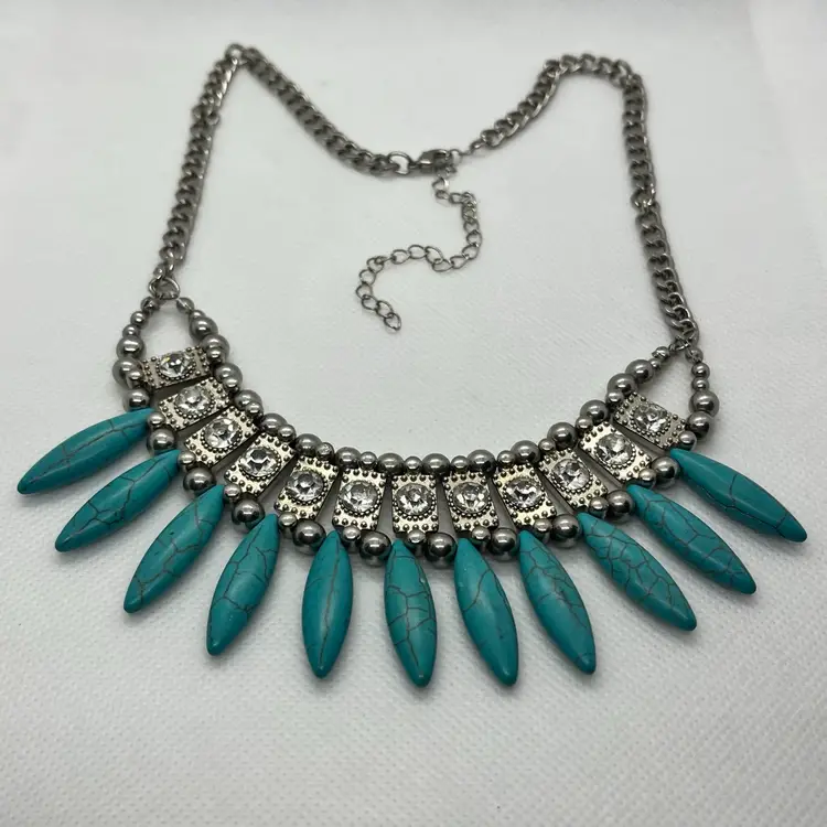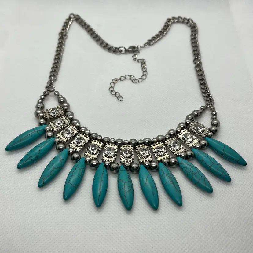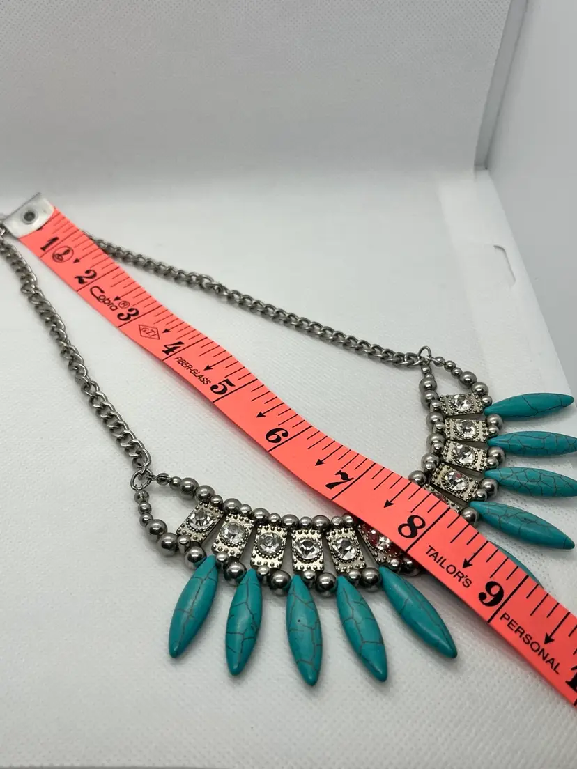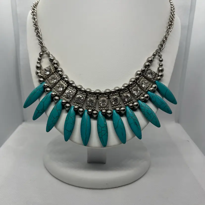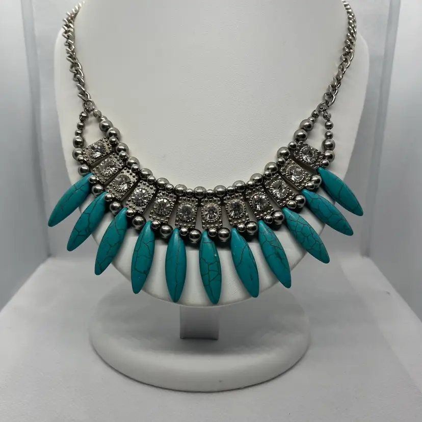 Southwest Style Faux Turquoise Silver Tone Collar Bib Necklace